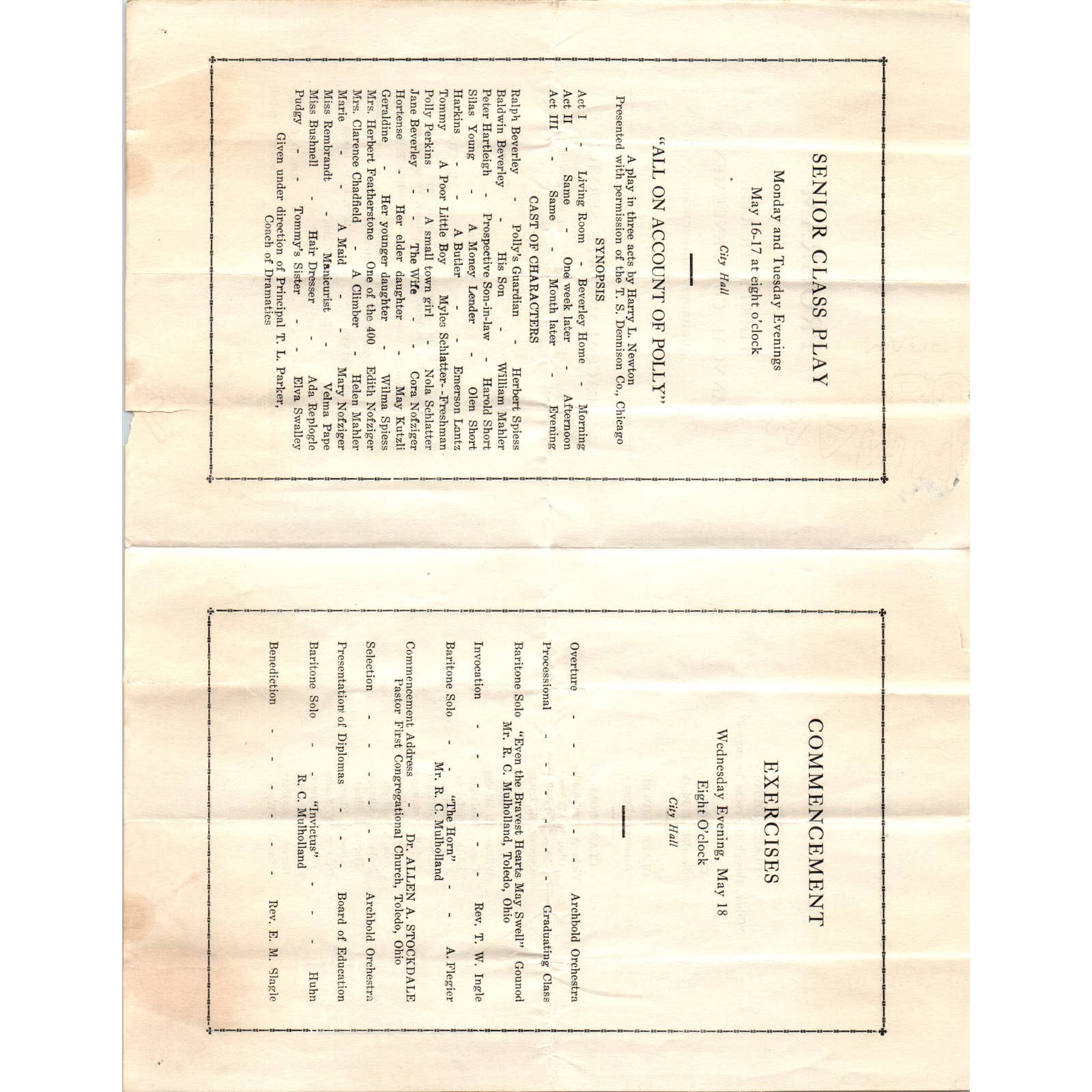 1927 Original Archbold High School 34th Annual Commencement Program AD8
