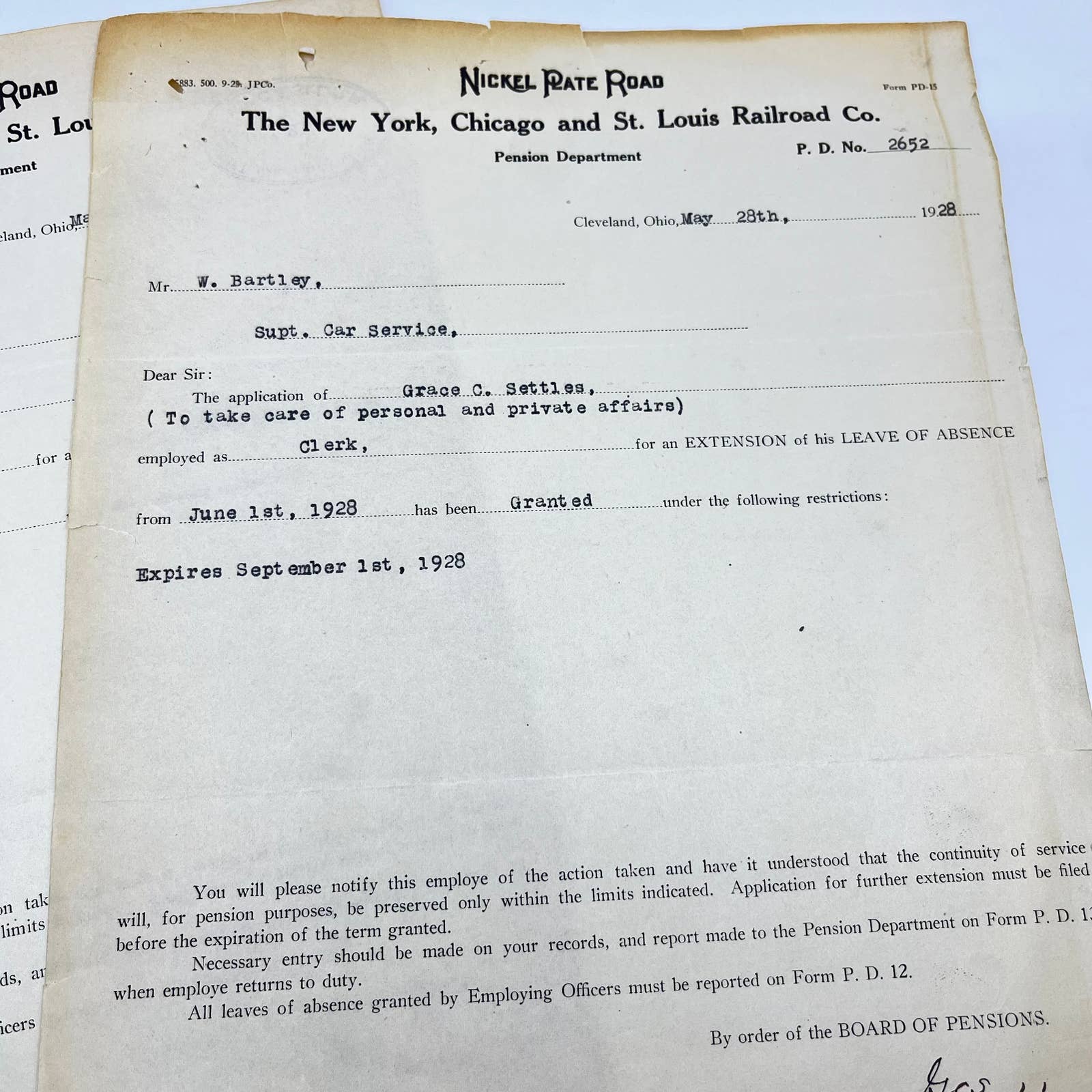 1928 New York, Chicago & St Louis Railroad Co. Leave of Absence Form Lot 2 AA9