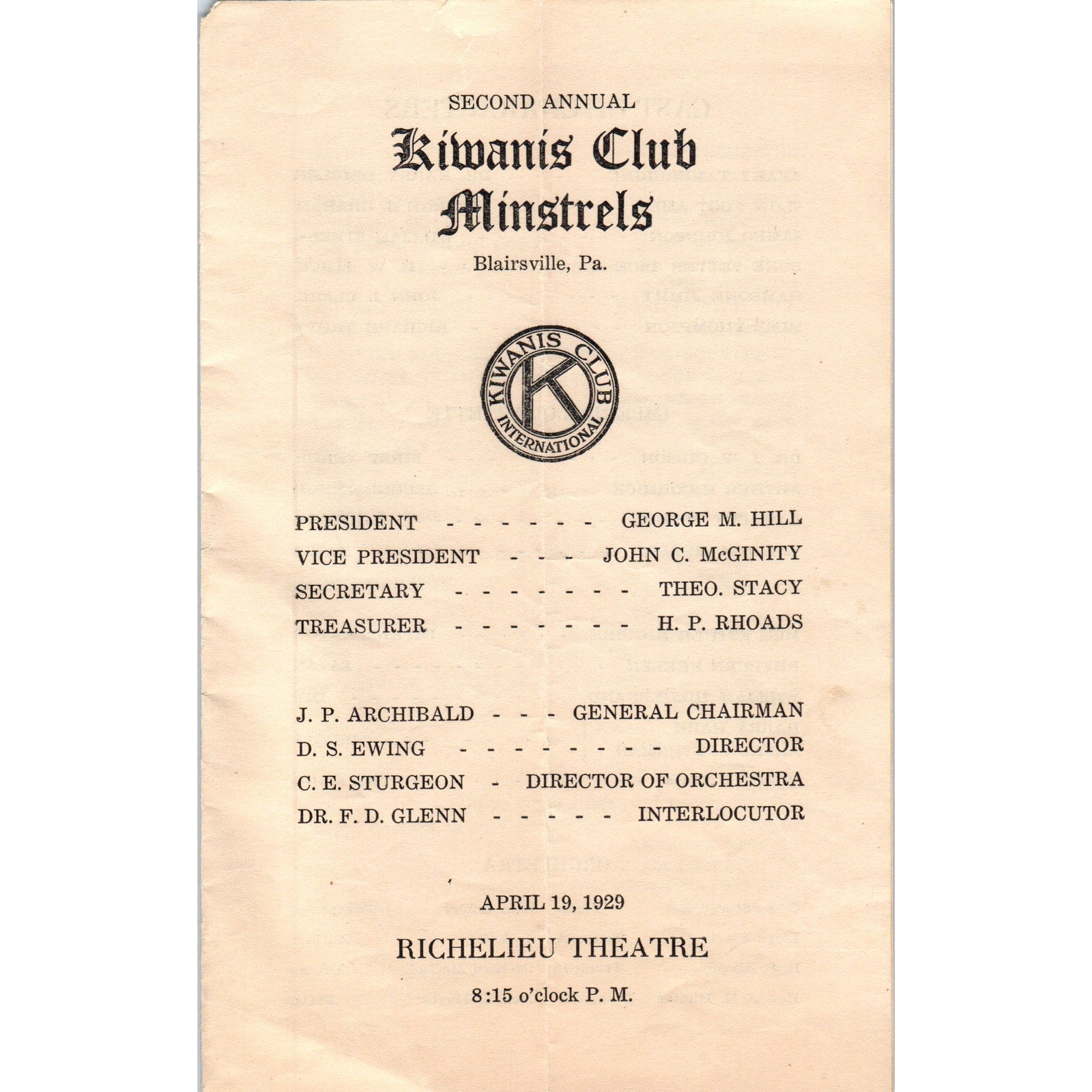 1929 Kiwanis Club Minstrels Blairsville PA Richelieu Theatre Program AD8-R5