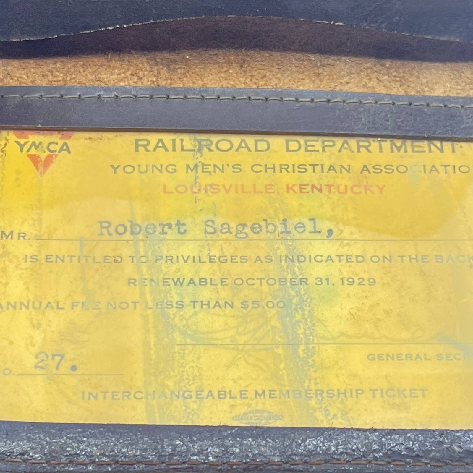 1929 L&M RR Railroad YMCA Leather Wallet Card Holder Louisville Kentucky SC7
