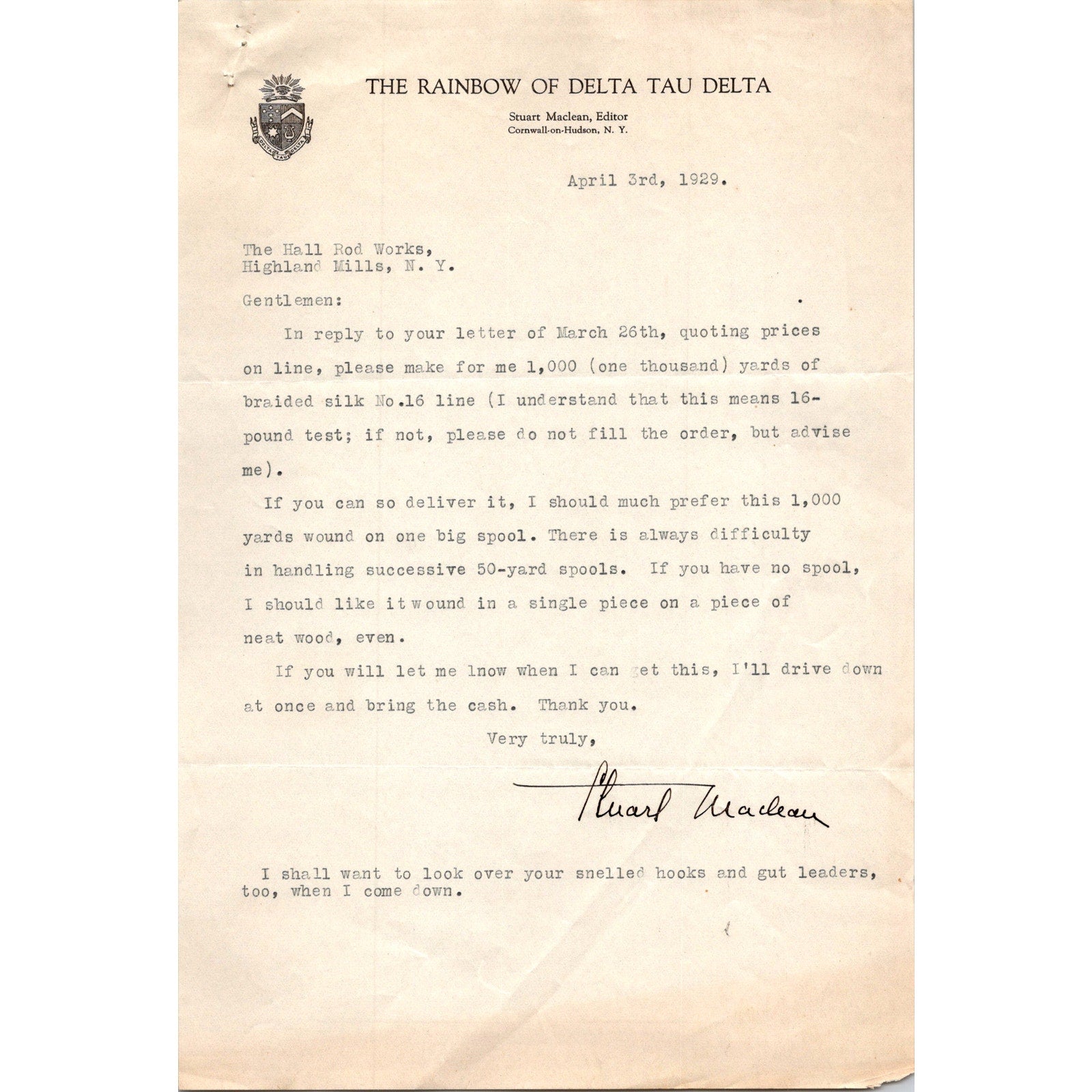 1929 Letter Rainbow of Delta Tau Delta Stuart Maclean to Hall Rod Works C30