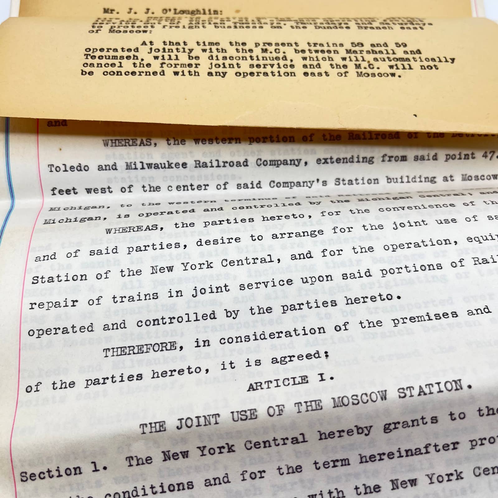 1930 New York Central & Michigan Central RR Railroad Re: Moscow Station TF7-3