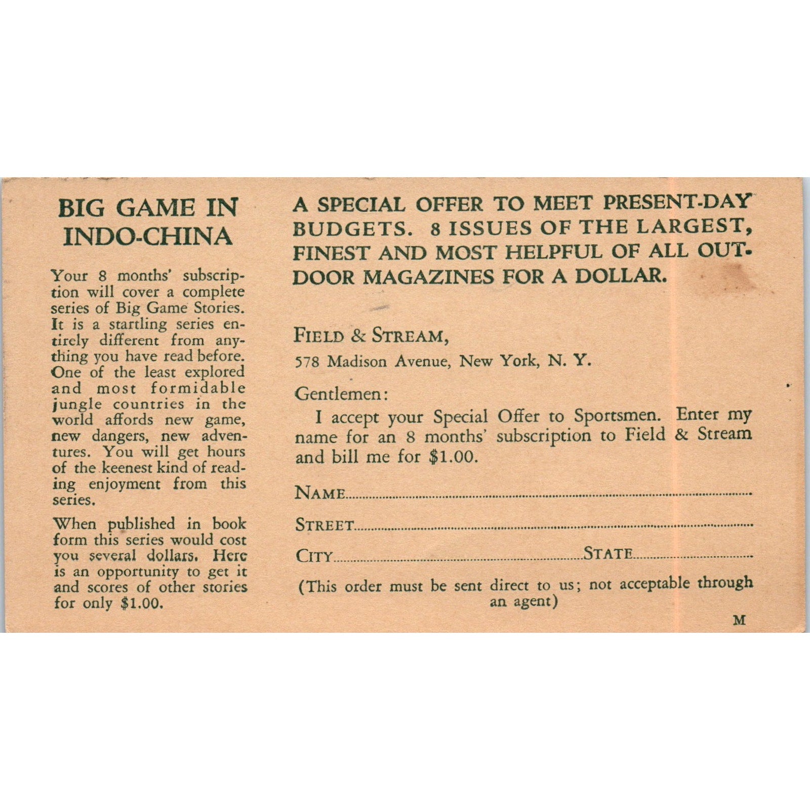 1930s Field and Stream Magazine Postal Mailing Card PE6