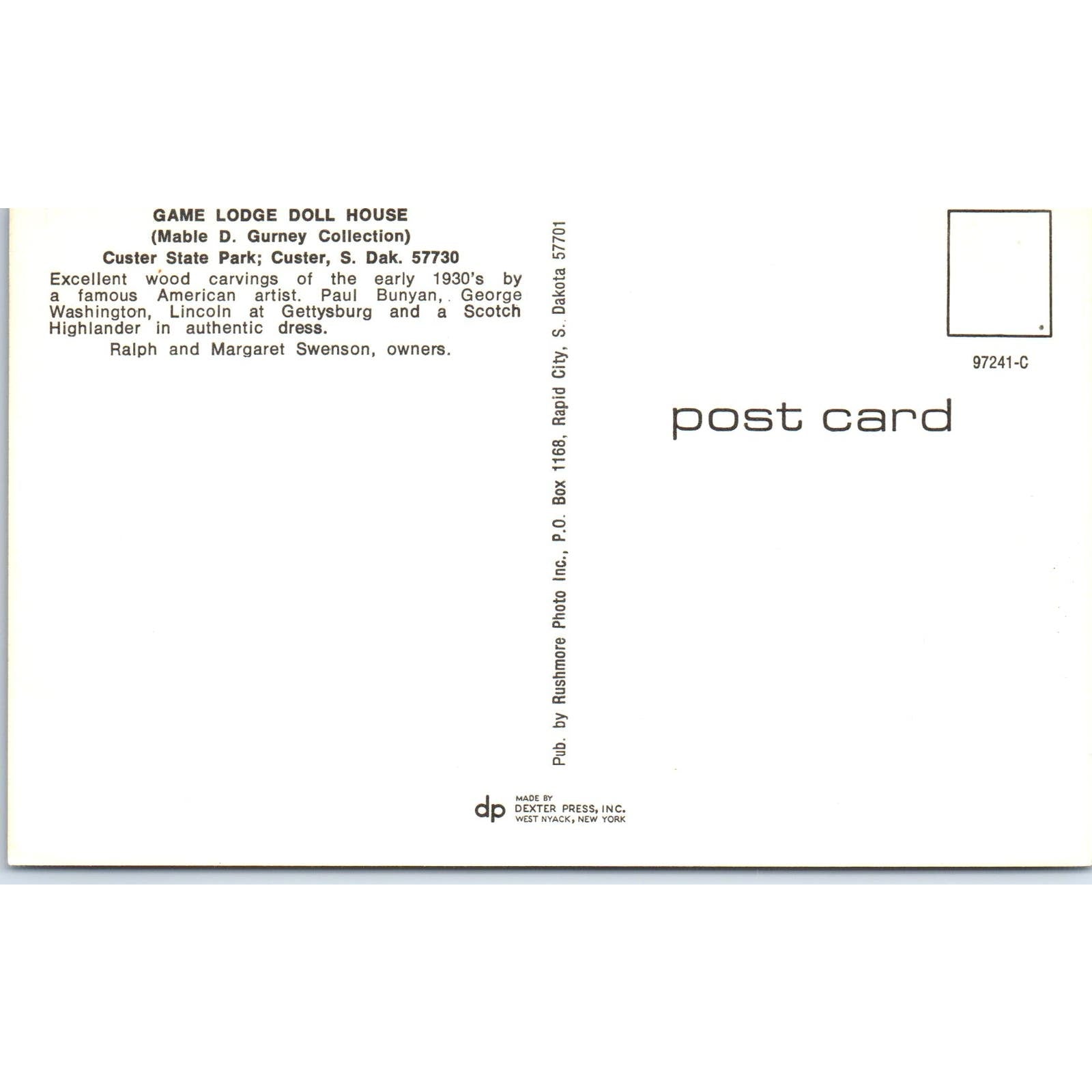 1930s Wood Carved Dolls of Famous American Figures Game Lodge Doll House Original Postcard PB10
