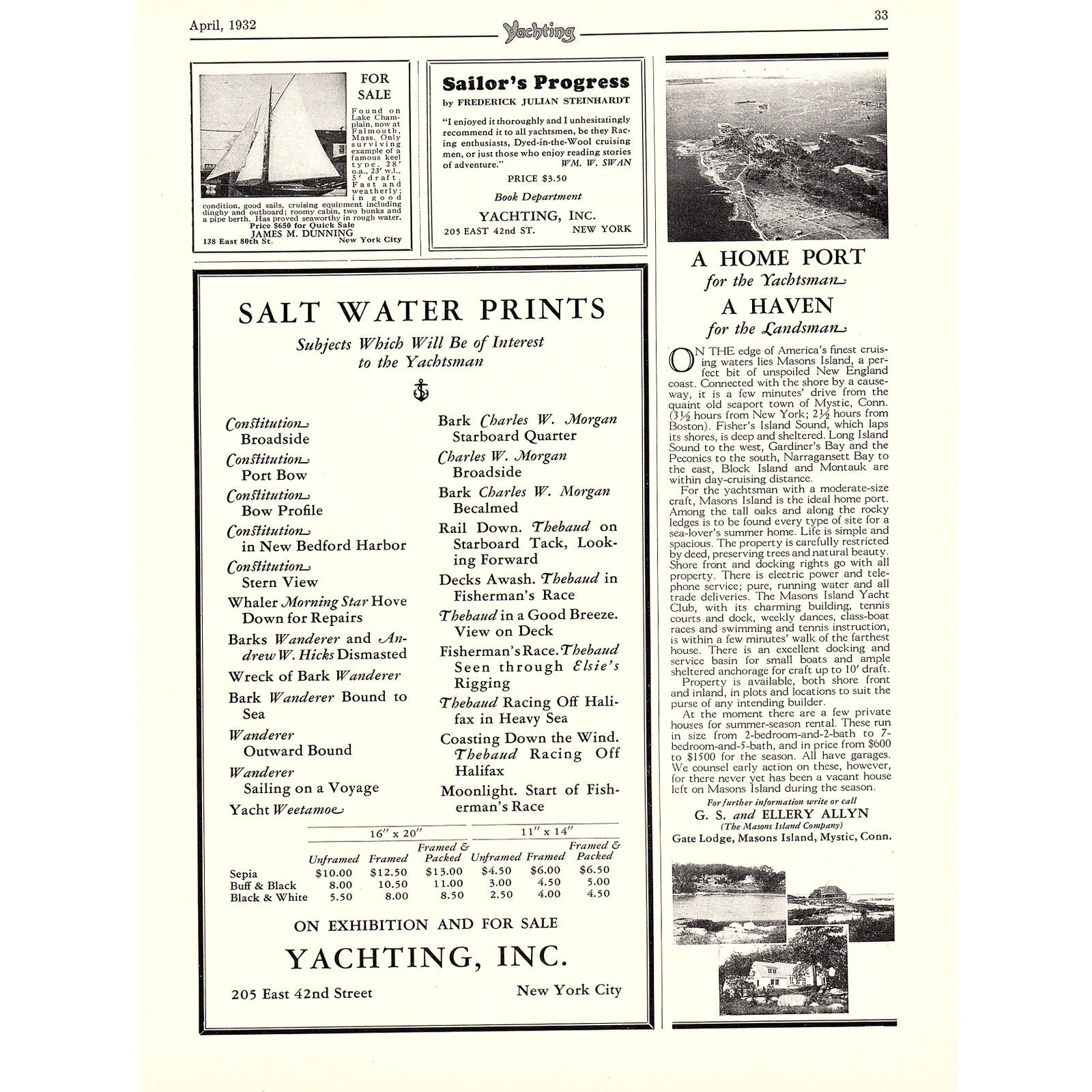 Approx 8.5x11.5". Original piece taken from 1932 Yachting Magazine. May have blemishes you would expect from something this age. See pics for condition.