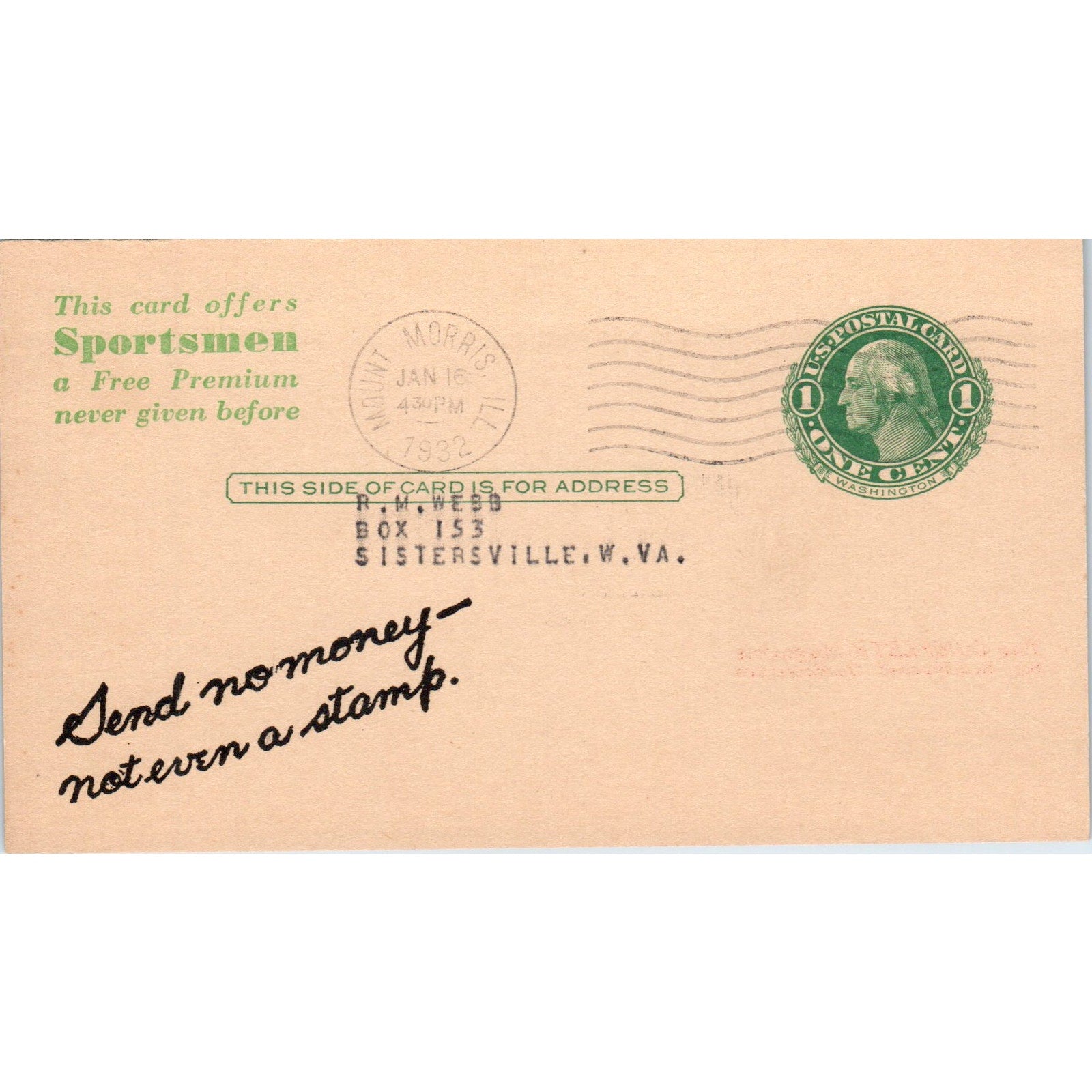 1932 Outdoor Life Magazine Postal Mailing Card PE6