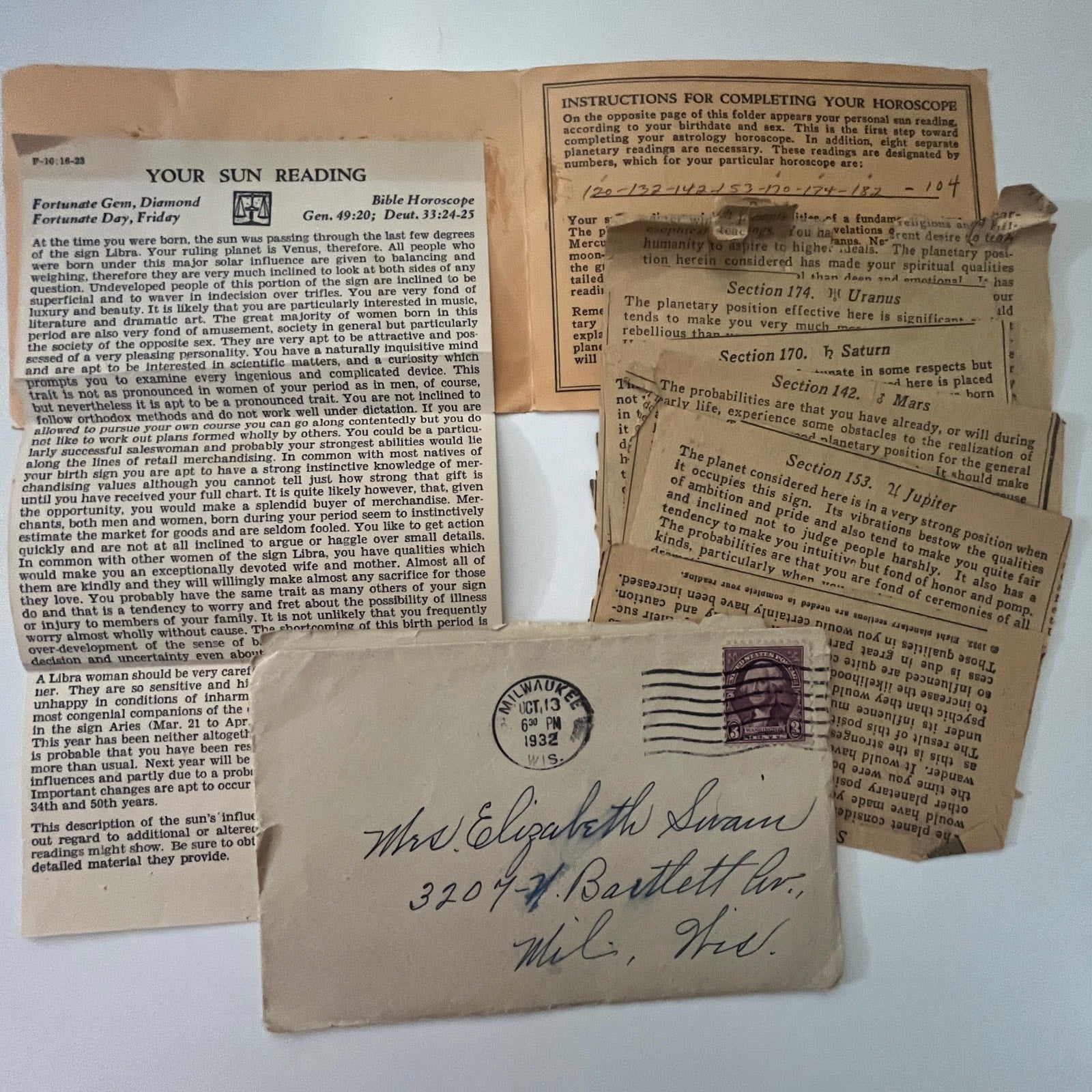 1932 Your Life By The Stars Milwaukee Journal Letter Elizabeth Swain AI9-H5