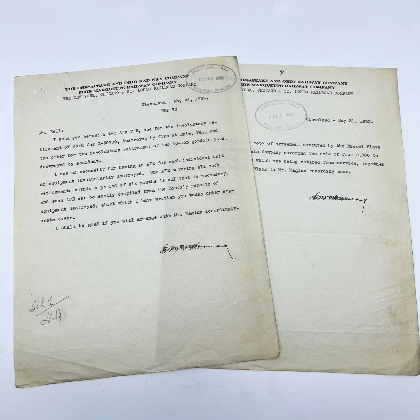 1933 Chesapeake and Ohio Railway Co. Letterhead Memo Lot of 2 AB1-3