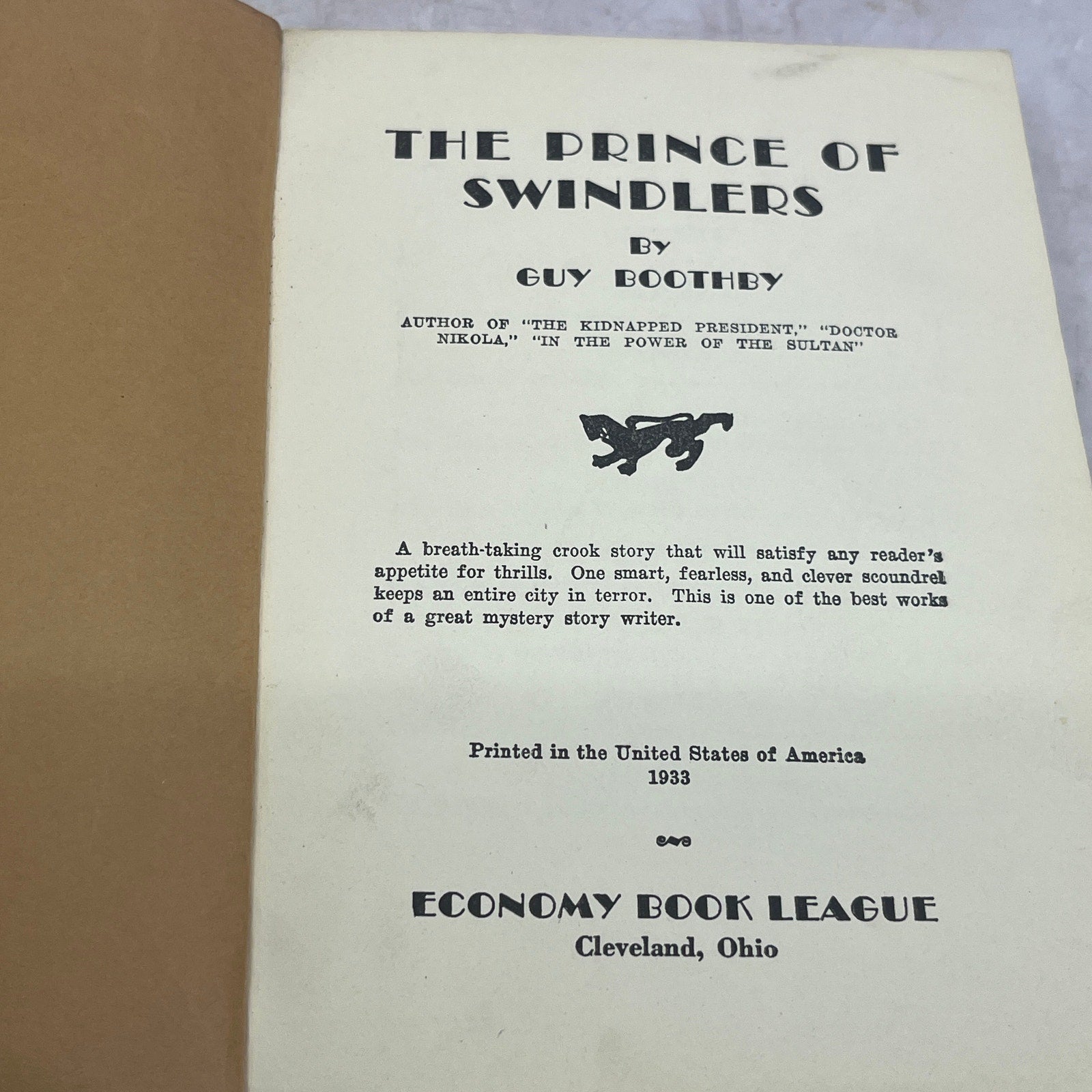 1933 The Prince of Swindlers by Guy Boothby TB6-OB