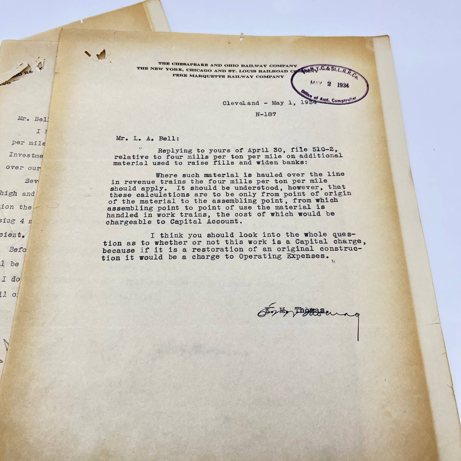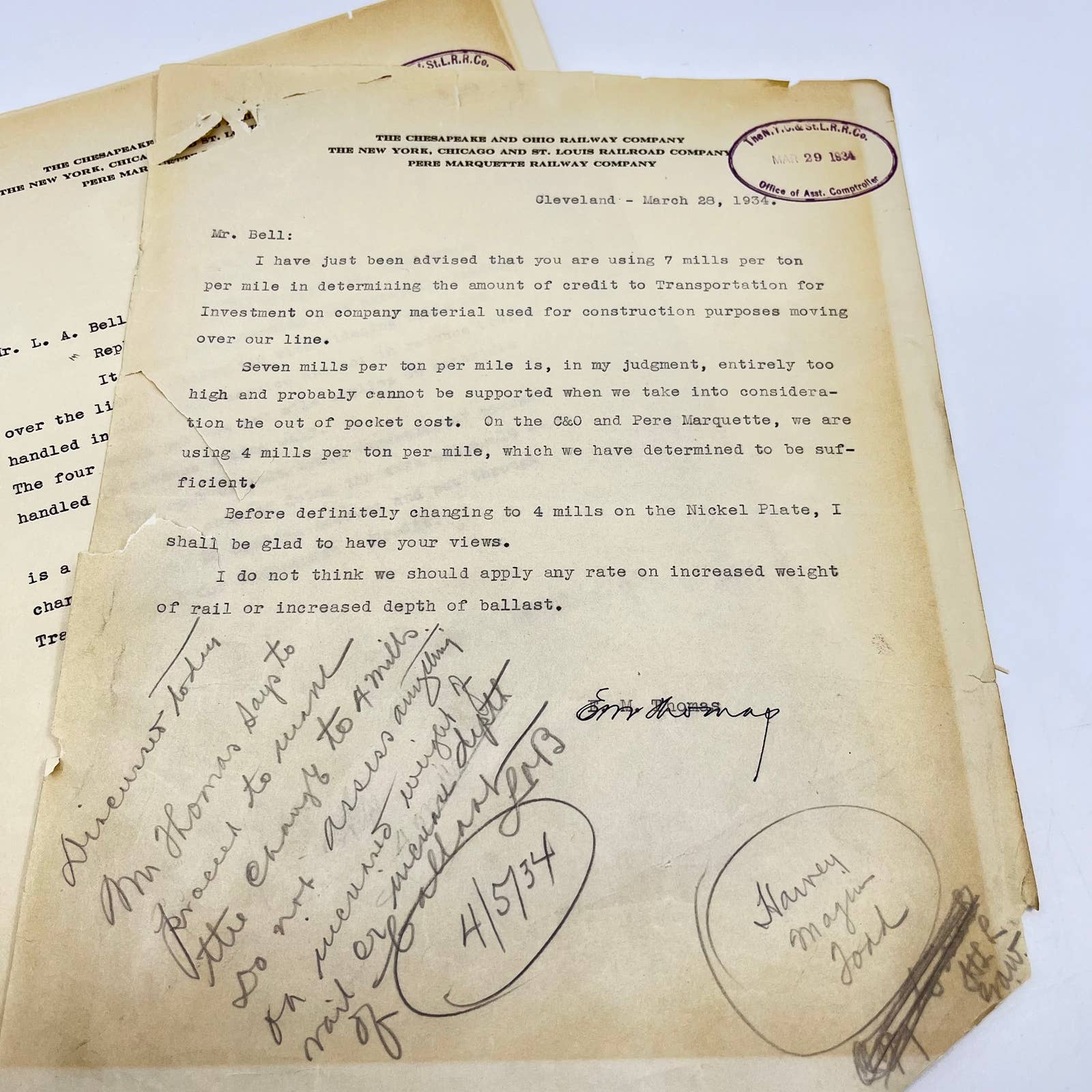 1934 Chesapeake and Ohio Railway Co. Letterhead Memo Lot of 4 AB1-2