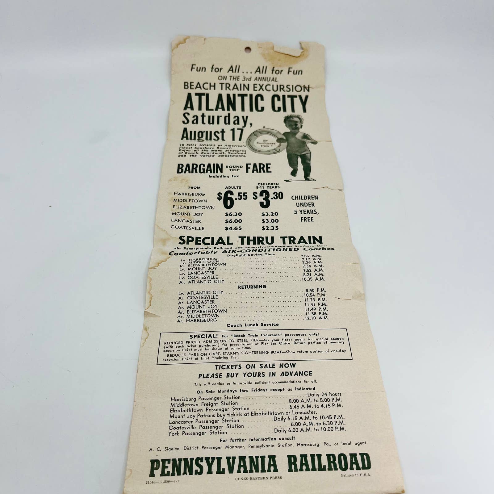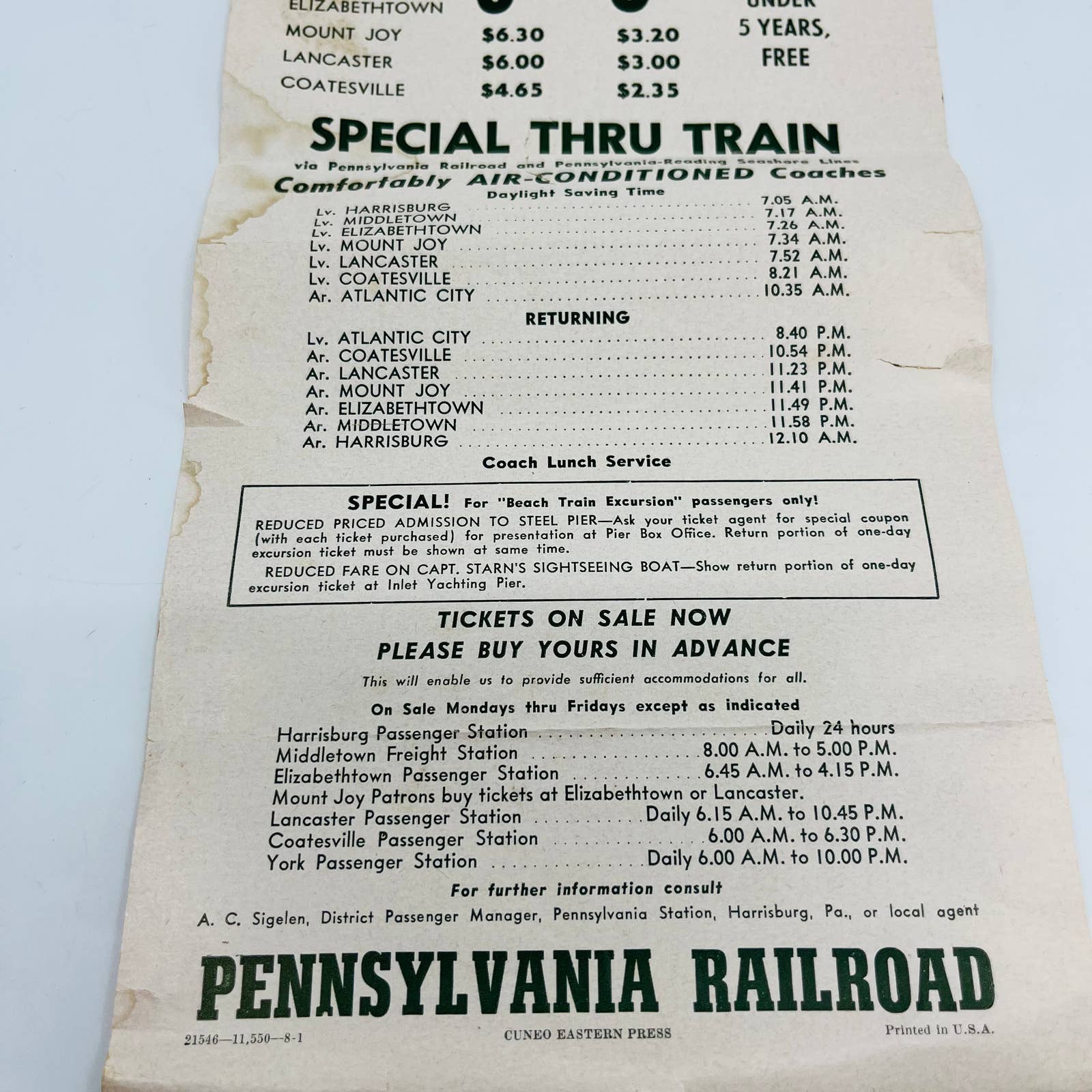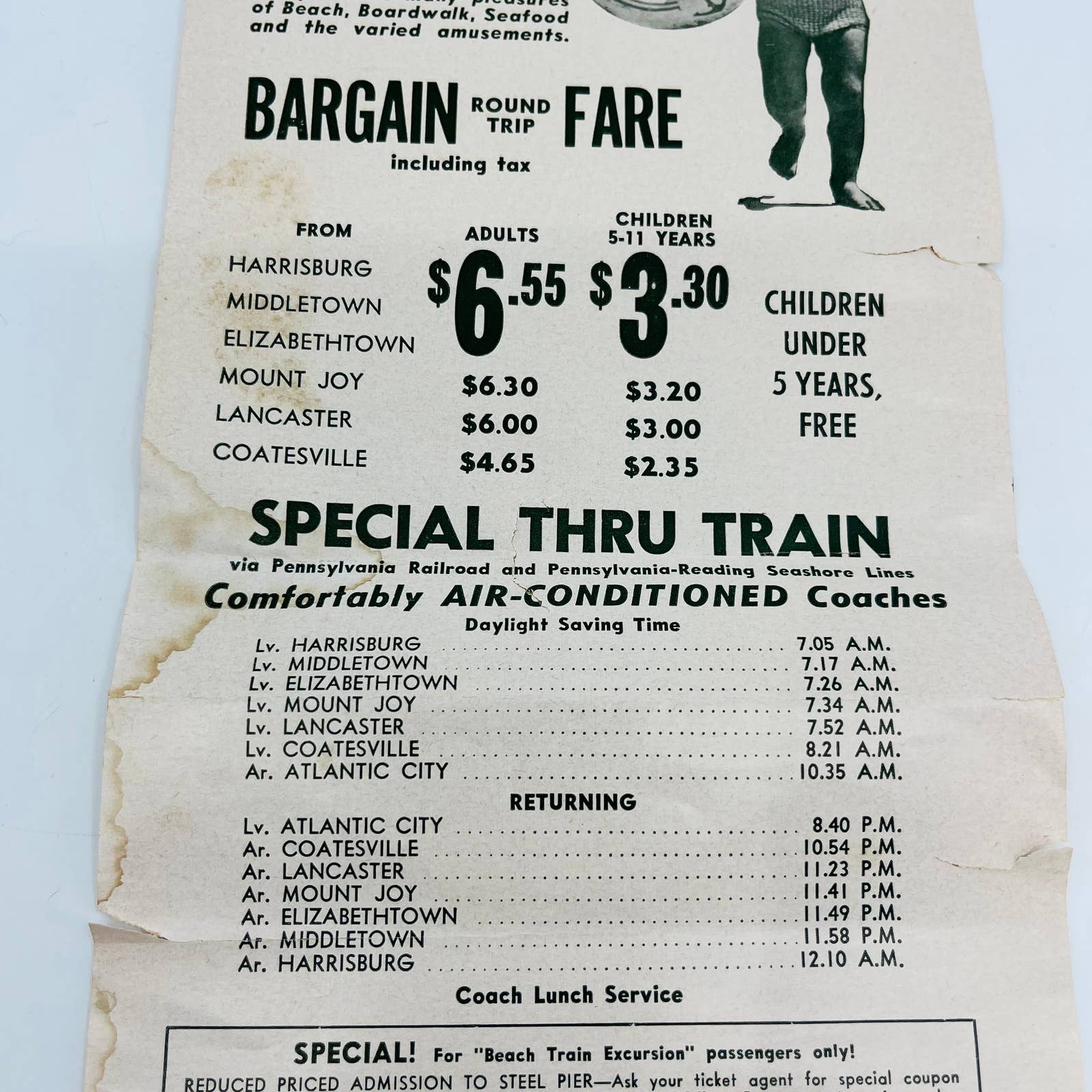 1935 Pennsylvania RR Advertising Poster Atlantic City Beach Train Excursion C8