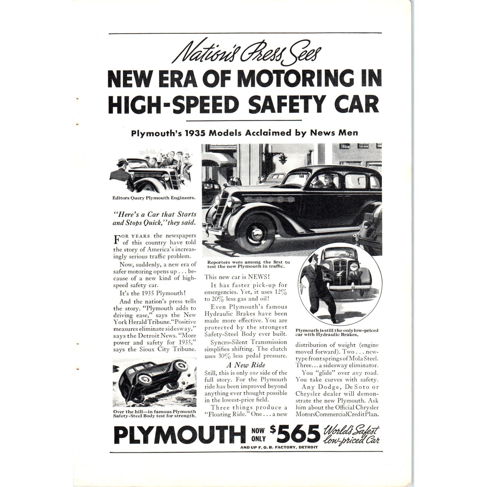 1935 Plymouth Automobile 7x10 Vintage Magazine Advertisement D9