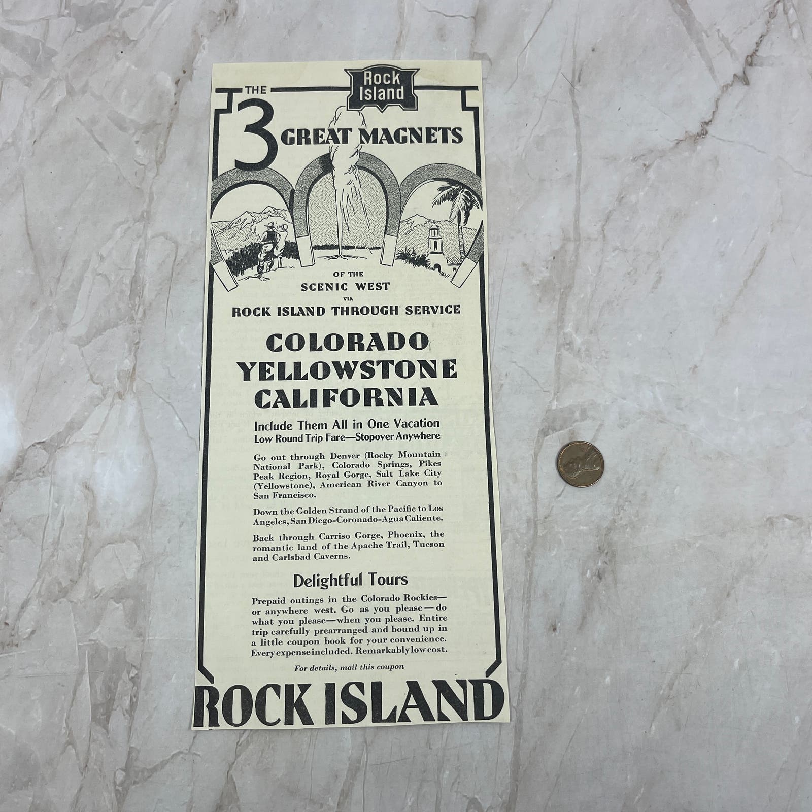 1937 Rock Island Railway CO CA Yellowstone 4.5x12 Vintage Magazine Advertisement FL6-6