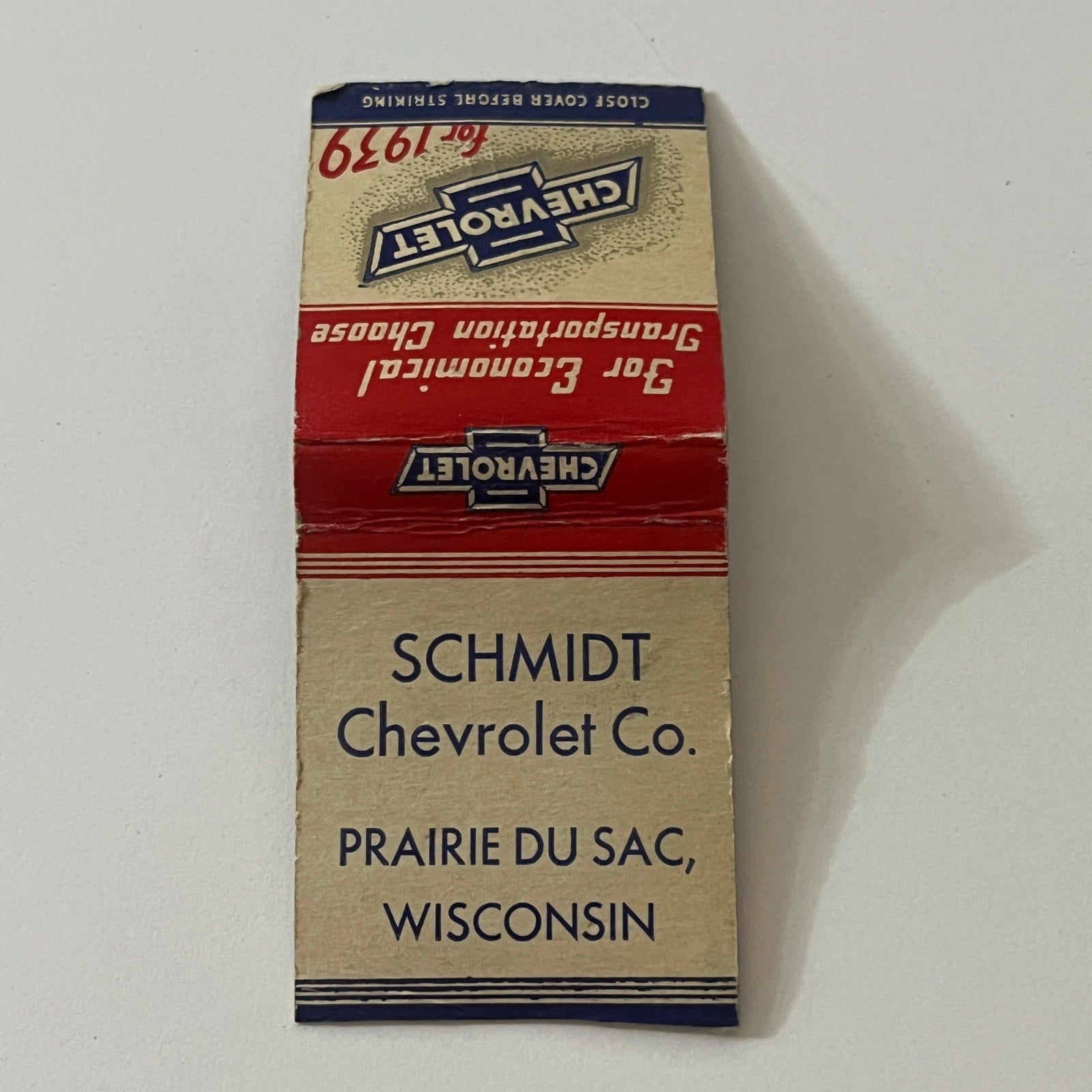1939 Schmidt Chevrolet Co Prairie Du Sac WI Vintage Matchbook TB6-MB2-11