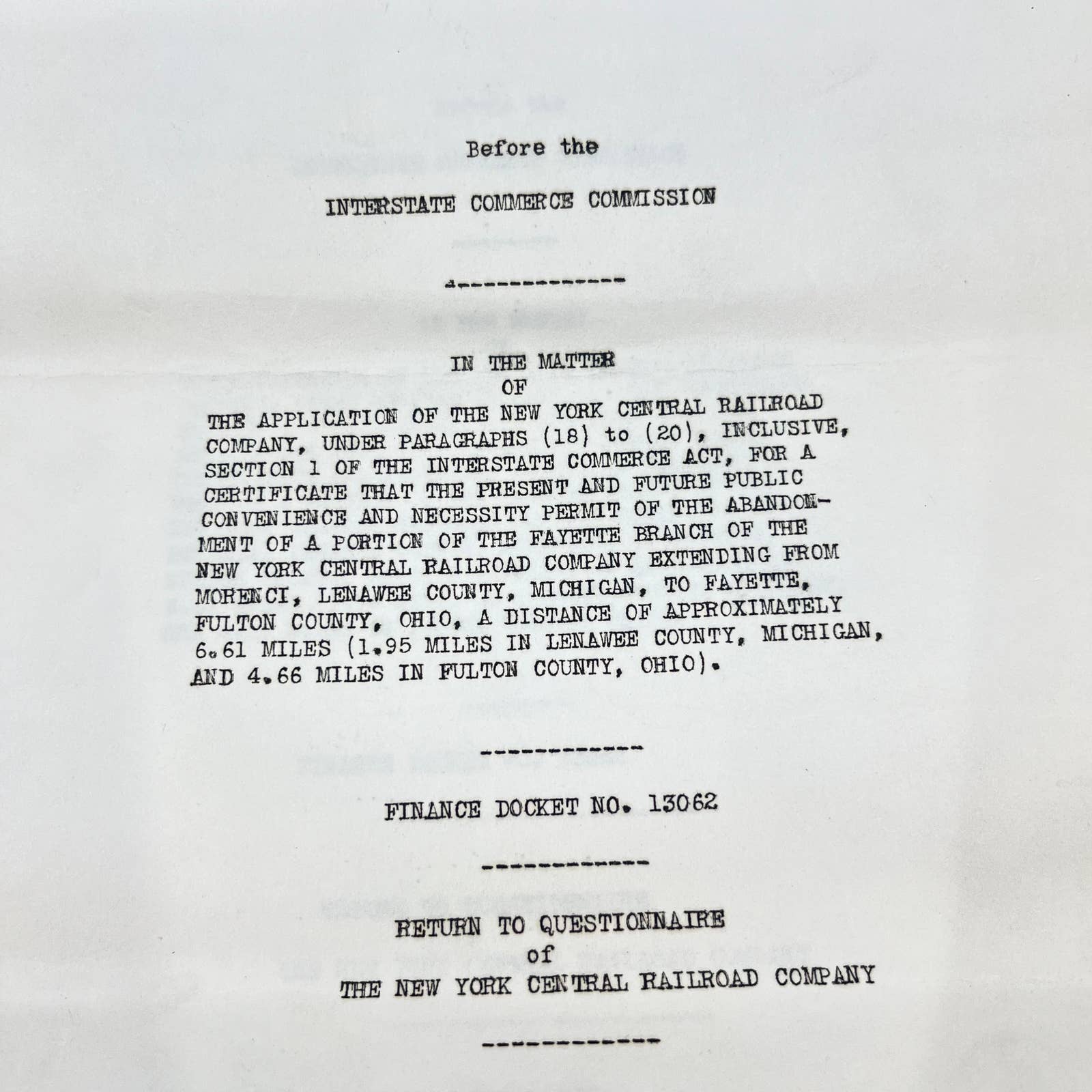 1940 New York Central RR Railroad Doc Abandonment of Fayetteville Branch TF7-2