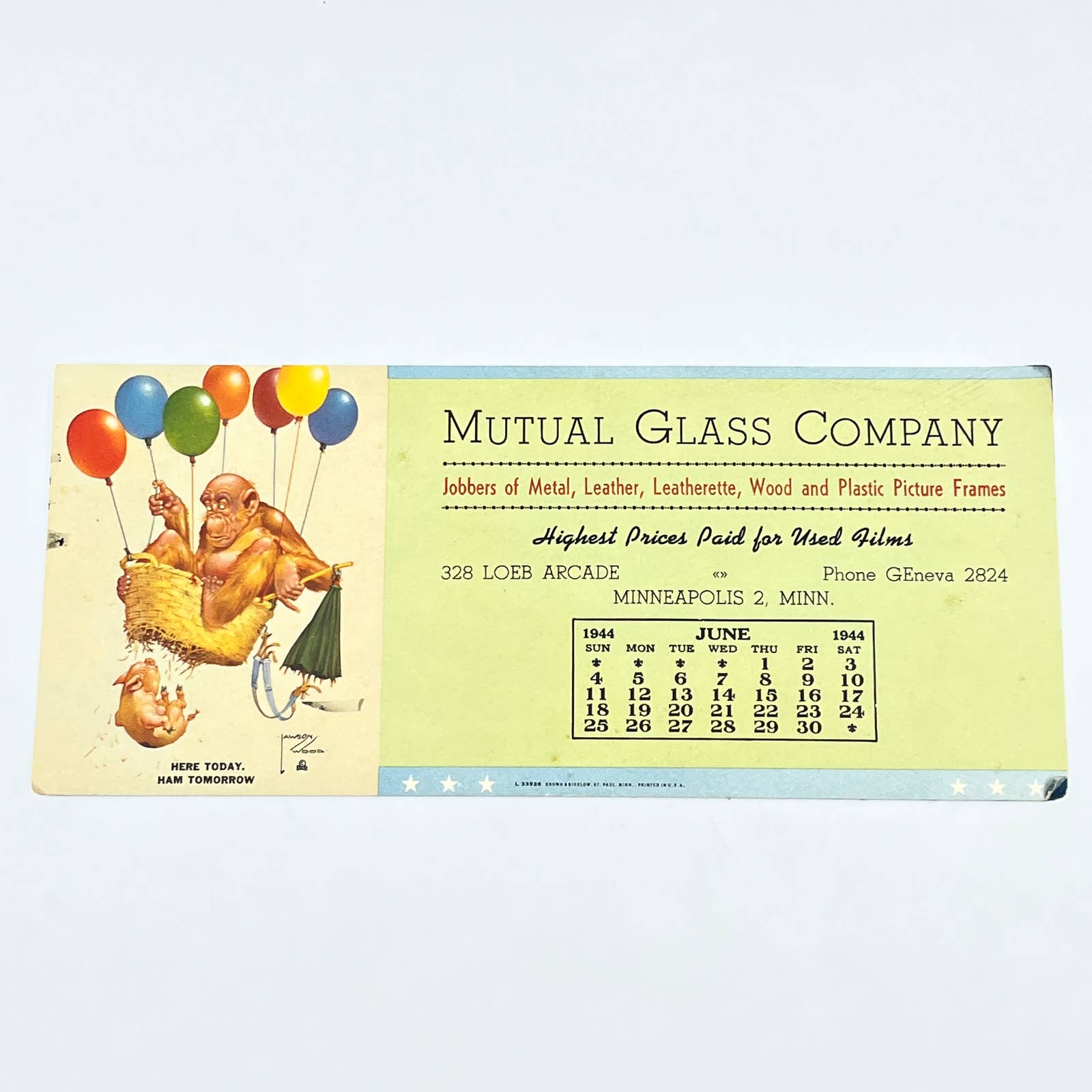 1944 Blotter Mutual Glass Company Minneapolis MN Monkey Here Today Ham Tomorrow AB8-2