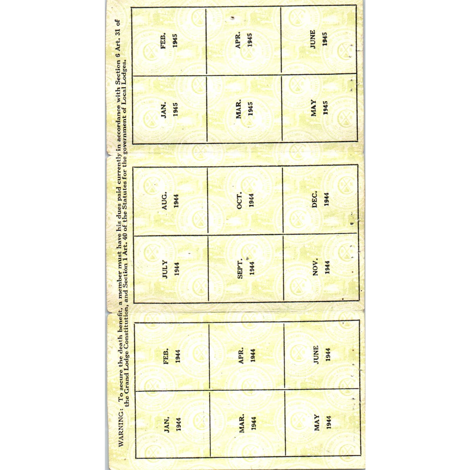1945 Brotherhood of Railway, Airline and Steamship Clerks Membership Card SE5