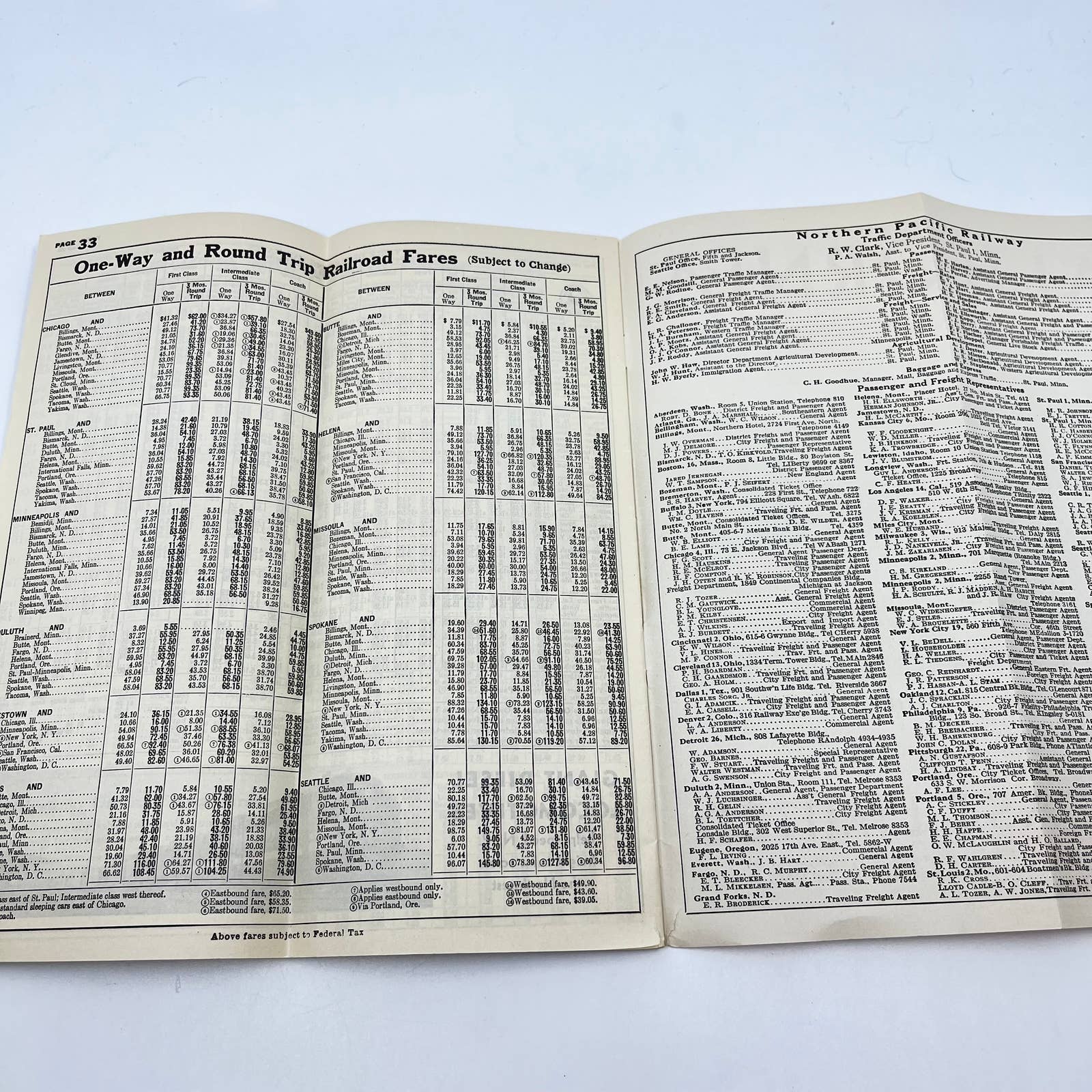1946 Northern Pacific Railway VistaDome North Coast Passenger Train Schedule TF7