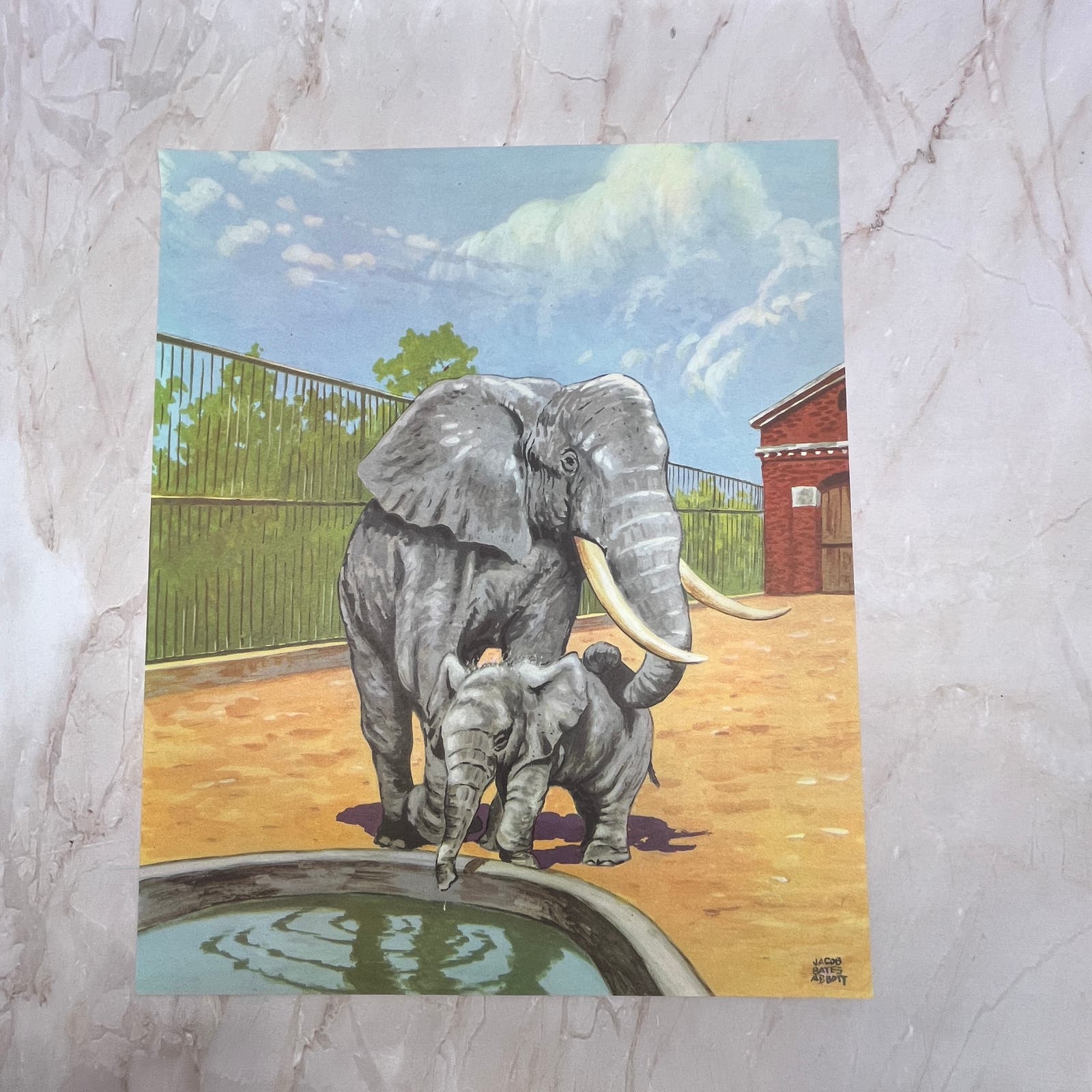 1950s Kitsch Elephants at the Zoo Jacob Bates Abbott Art Print 10x12 FL6-4