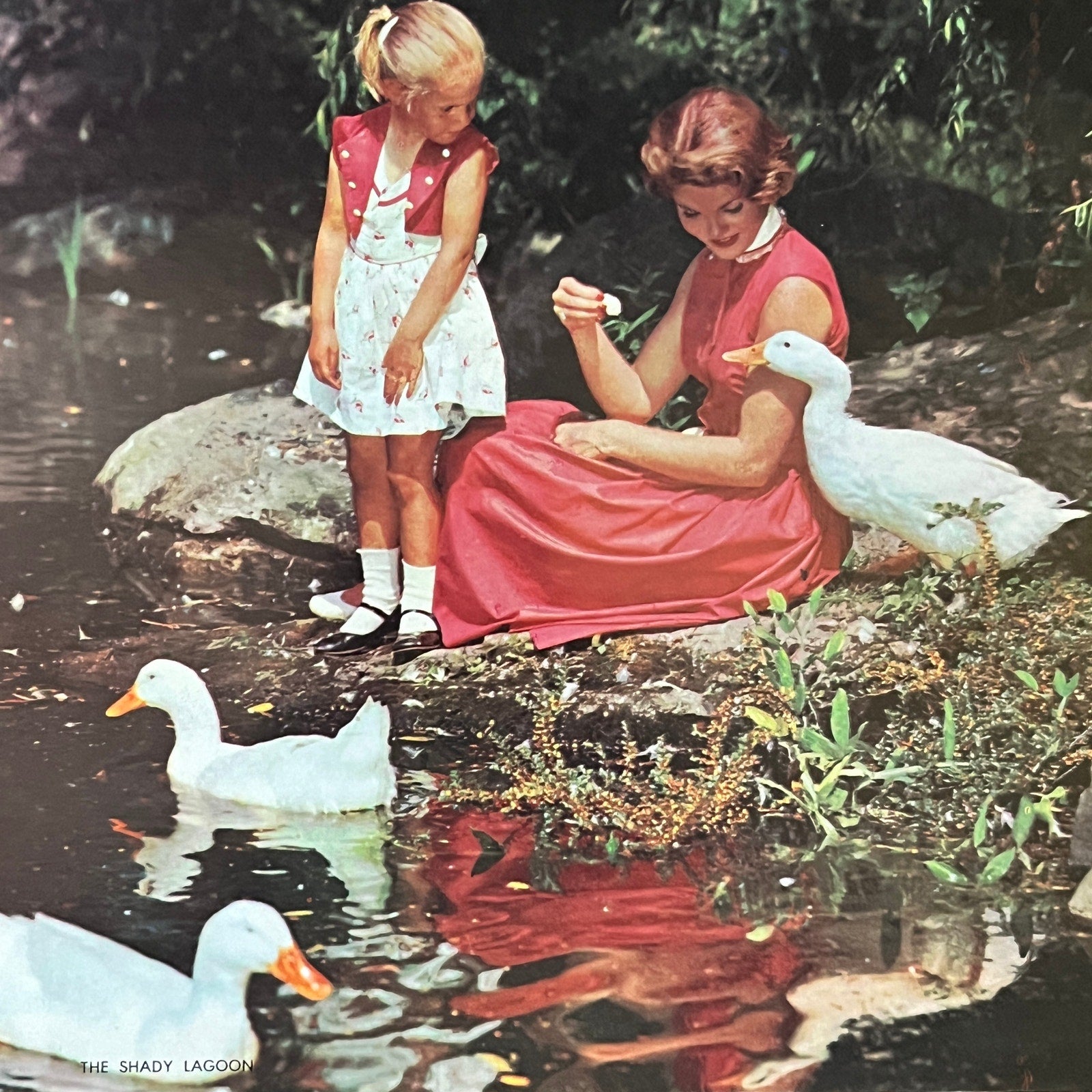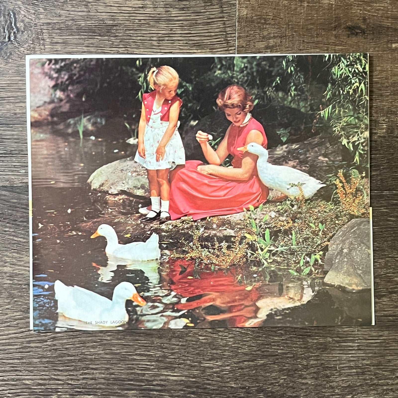 1950s Kitsch The Shady Lagoon Girl Feeding Geese 8x10 Art Print V2-2