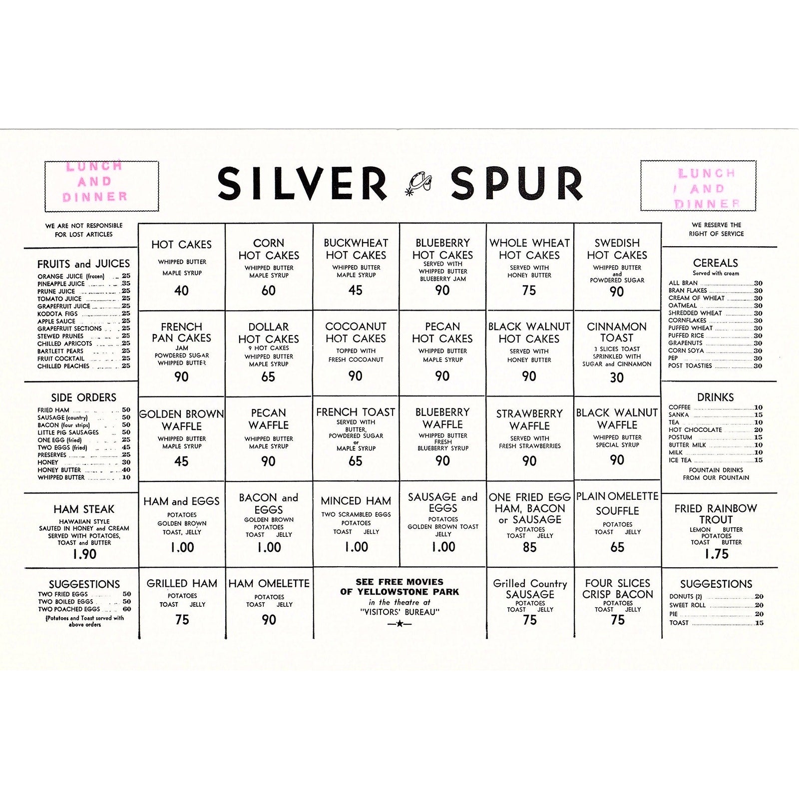 1950s SIlver Spur Cafe West Yellowstone Montana Souvenir Menu AF9-H2