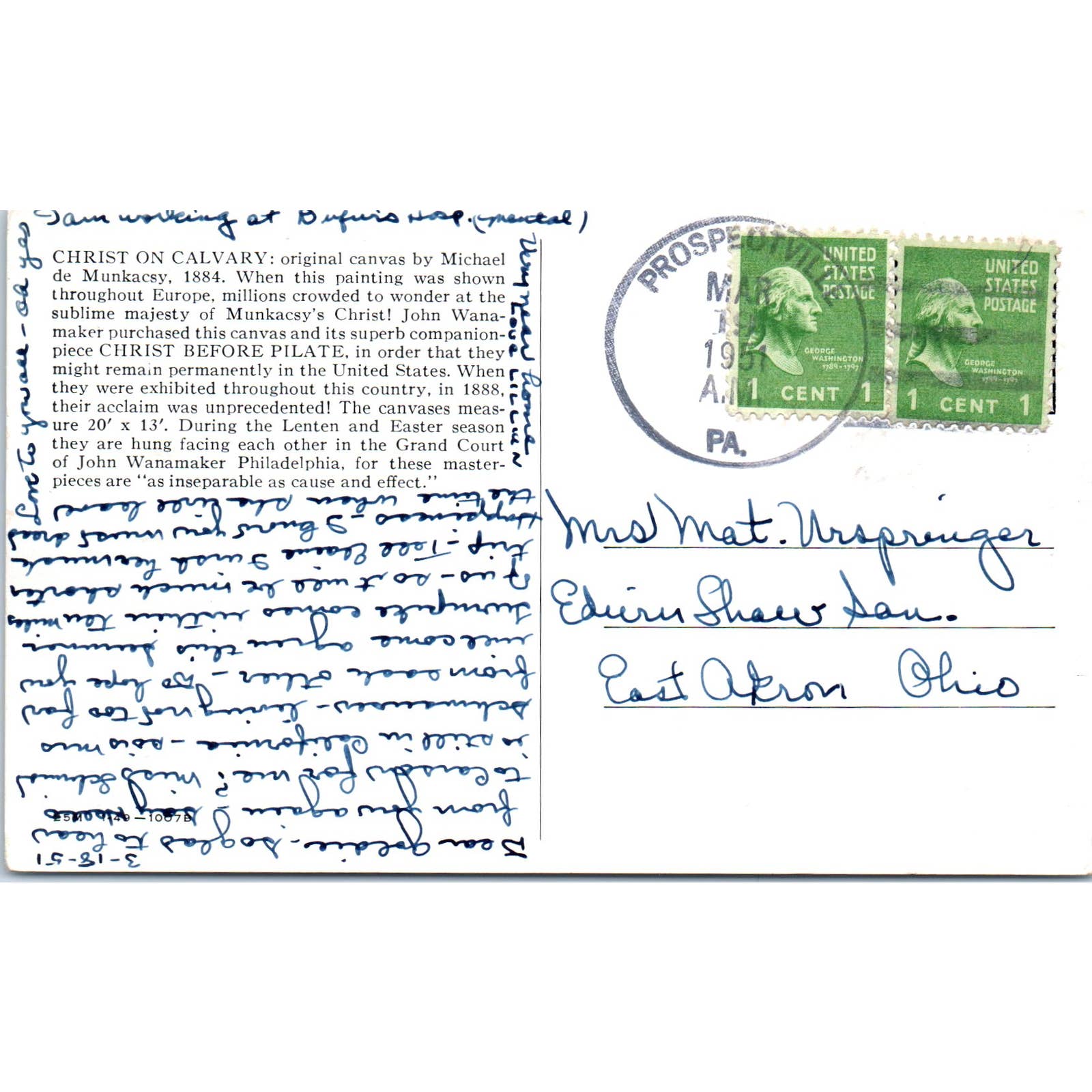 1951 Christ on the Calvary Depiction Original Postcard TK1-P1