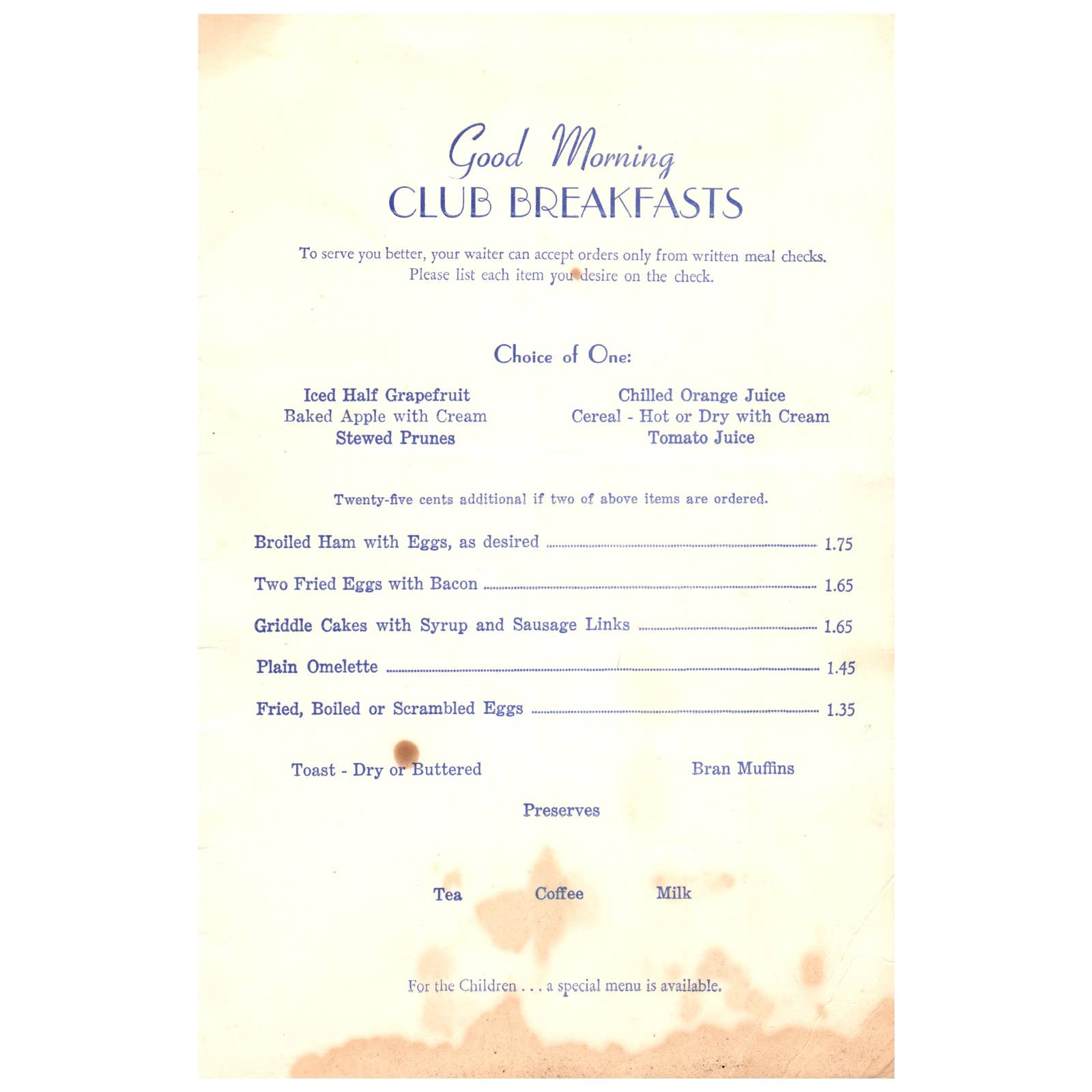 1952 Pennsylvania Railroad A La Carte & Club Breakfast Menu AD8