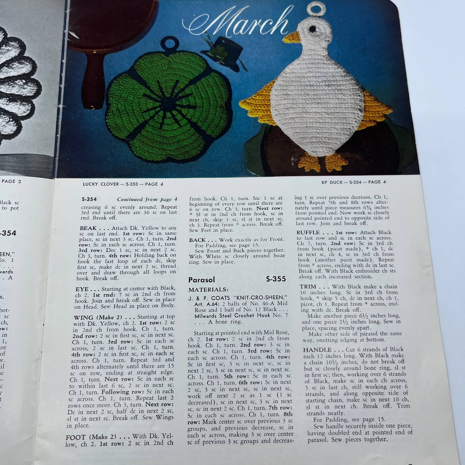 1952 Pot Holders Crochet Book #294 Kitchen SUNFLOWERS Ladybug DUCK Turtles TH7