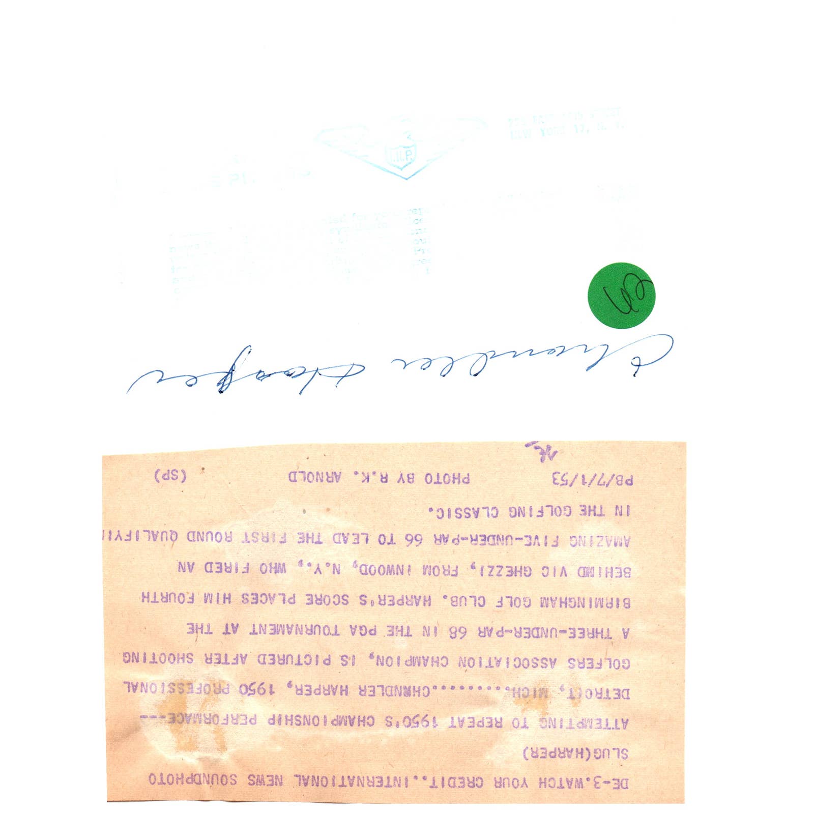1953 Press Photo Chandler Harper PGA Tournament Birmingham Golf Club 7x9 AD2