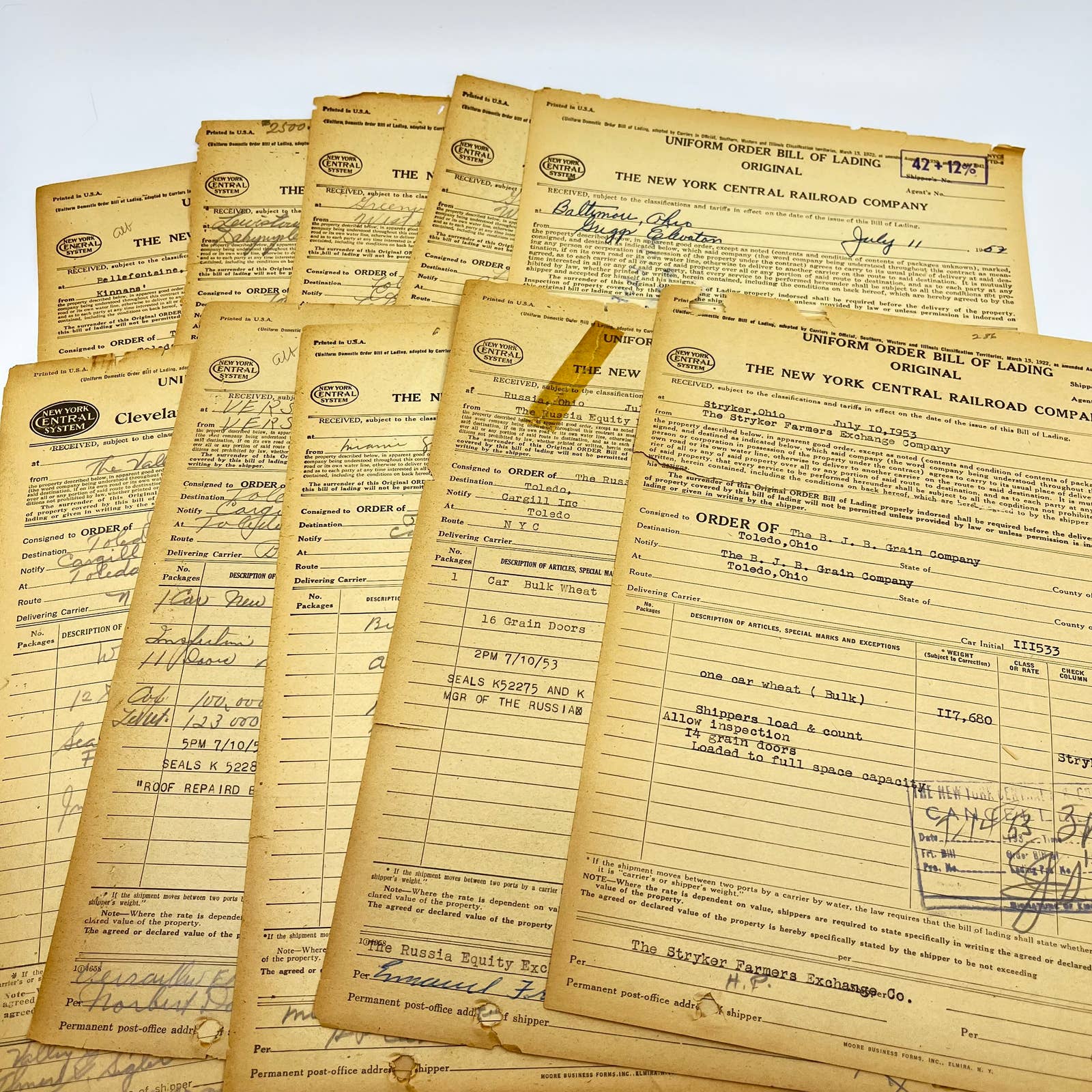 1953 The New York Central Railroad Co RR Original Bill of Lading Lot of 10 AB1-2