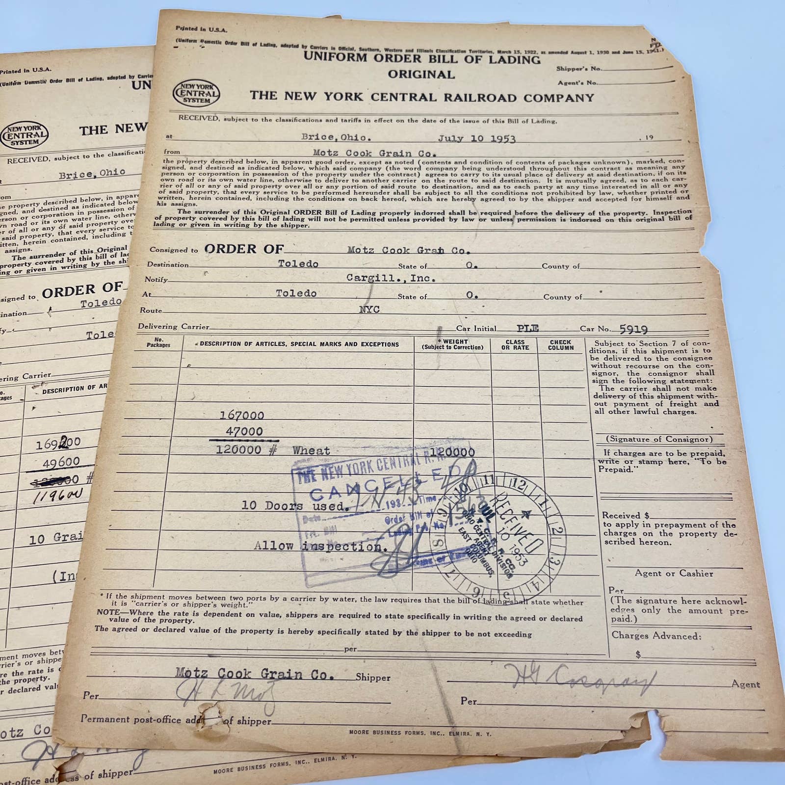 1953 The New York Central Railroad Co RR Original Bill of Lading Lot of 5 AB1-4