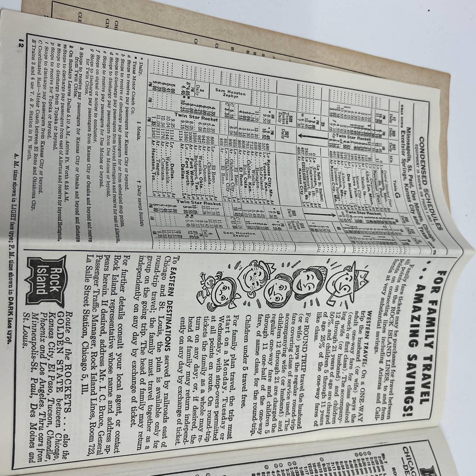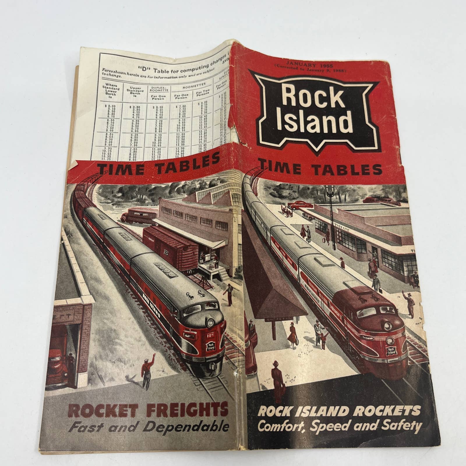 1955 Rock Island Railway Railroad Time Table Brochure "Rock Island Rockets" TG6