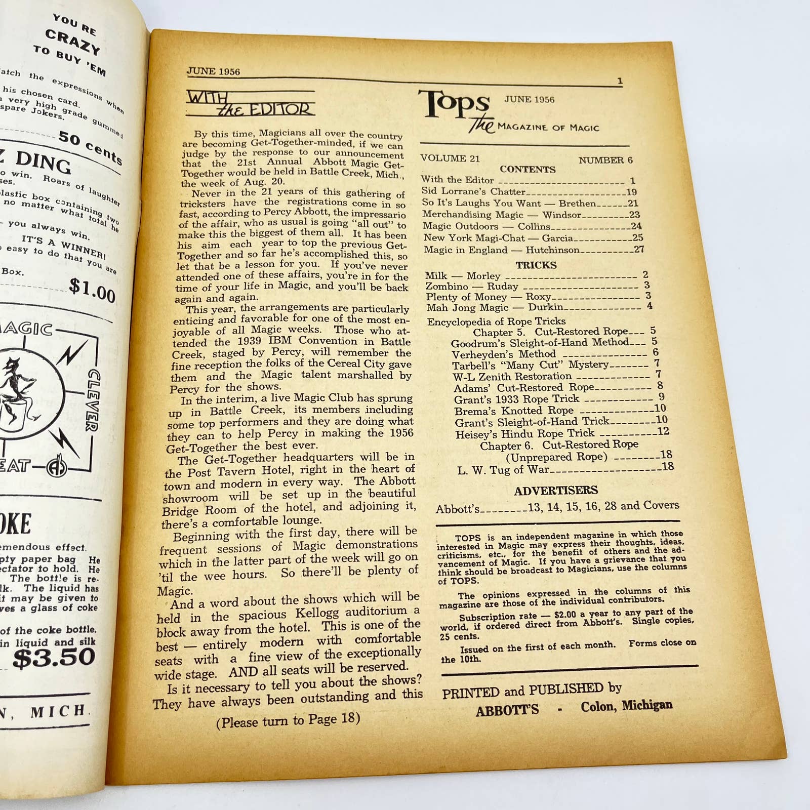 1956 June - Tops Magazine of Magic - Tricks Magicians TF7