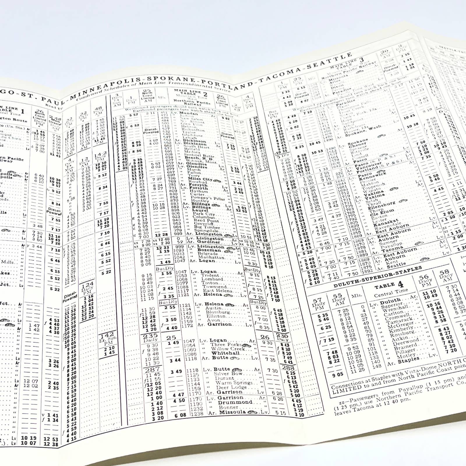 1956 Northern Pacific Railroad Railway North Coast Limited Timetable AC1
