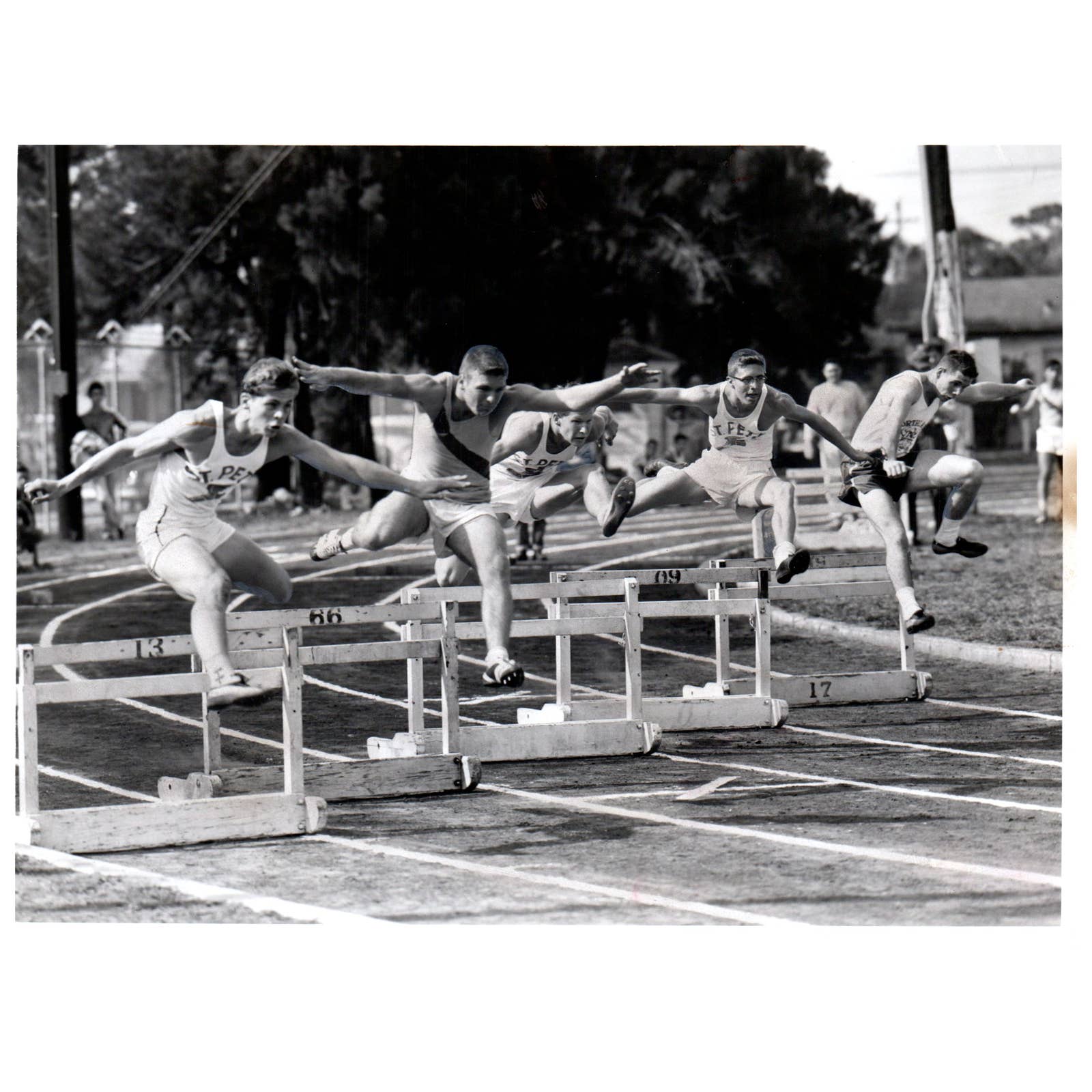 1956 Original Press Photo Track and Field Hurdles St Petersburg Jim Kinsey ~6x8" AD2