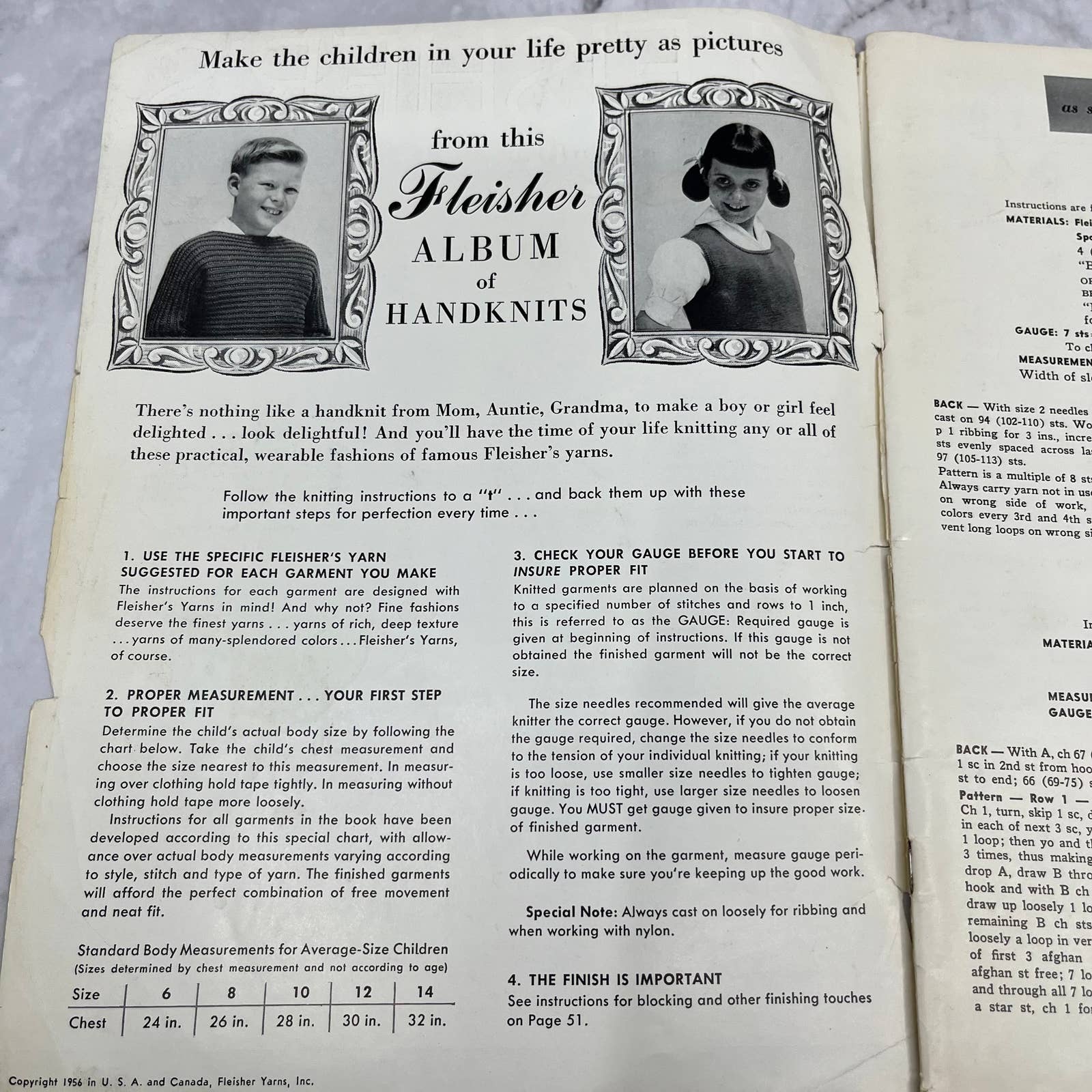 1956 Vintage Fleisher's Hand Knits for Boys and Girls Sizes 6 to 14 Pattern Book TJ3
