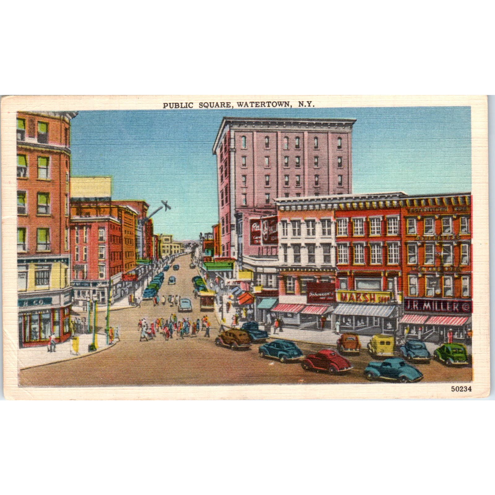 1958 Public Square Watertown New York Vintage Postcard PD3