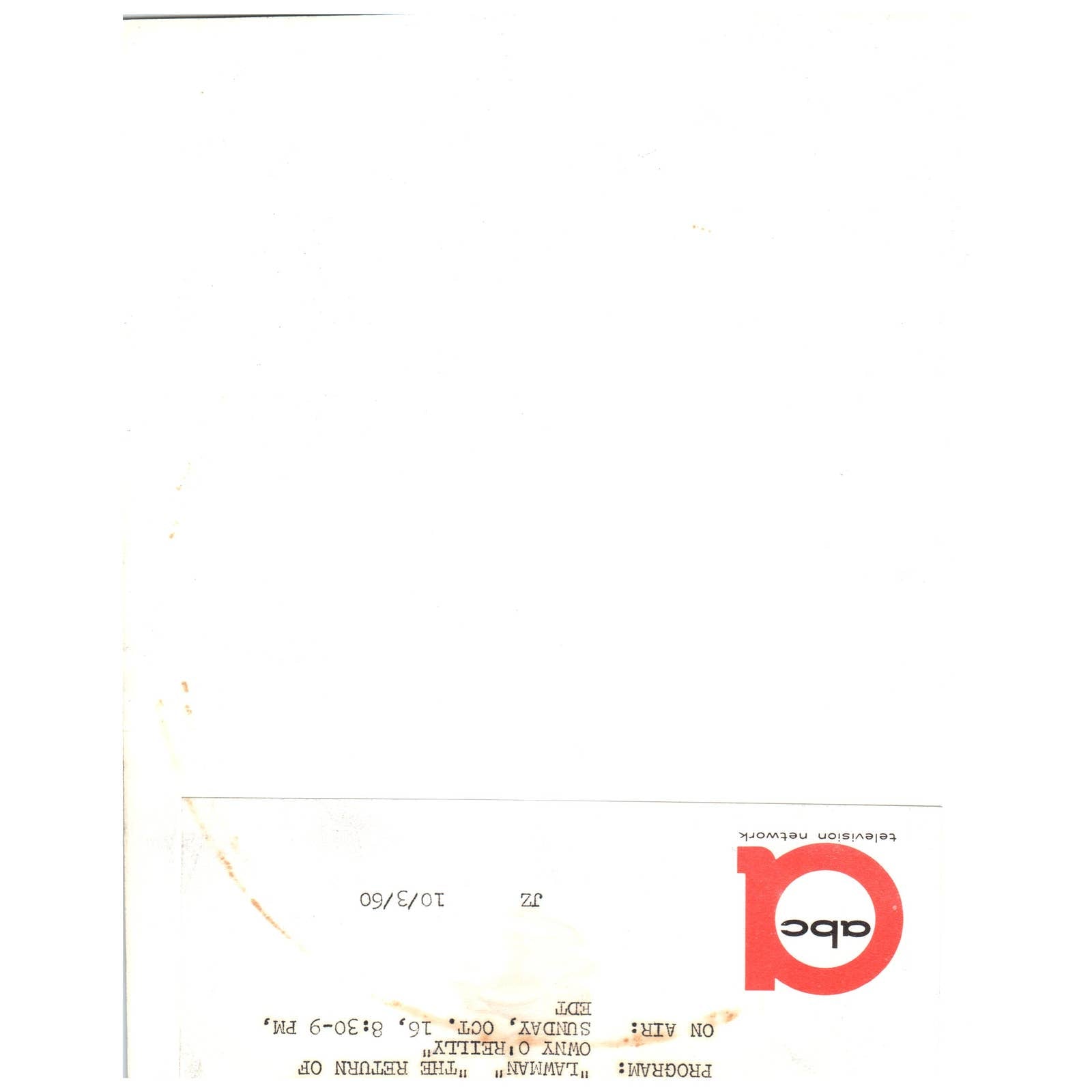 1960 ABC Press Photo John Russell Joey Grey "Lawman" Return of Owny O'Reilly AE1