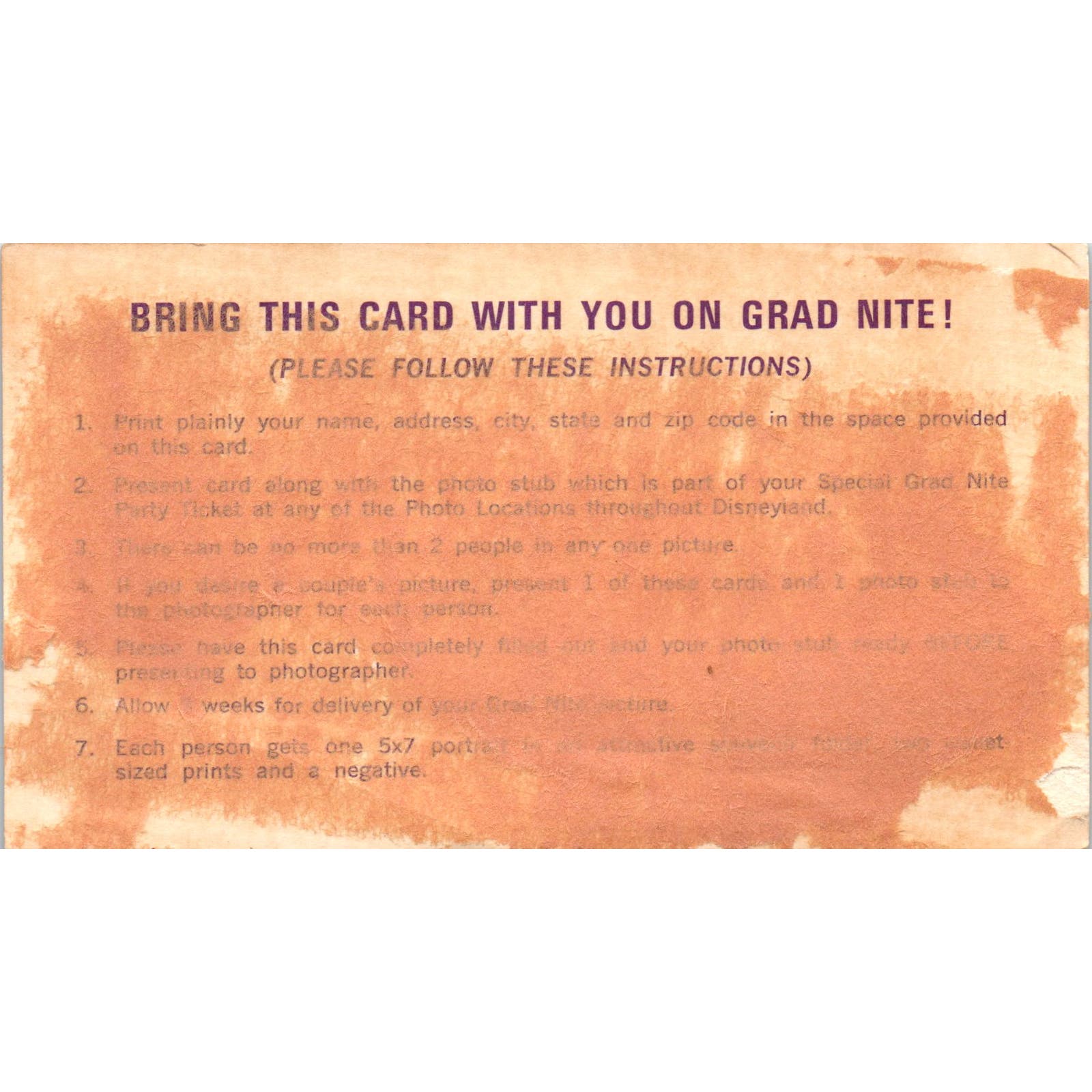 1960s Disney Disneyland Graduation Night Promotional Advertising Postcard AB9