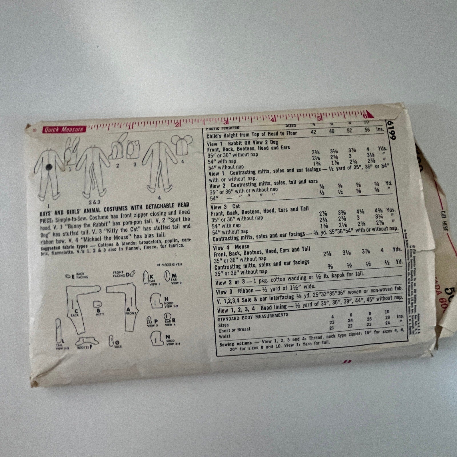 1960s Simplicity 6199 Unisex Childs sz 10 Costume dog cat mouse rabbit pattern TE2