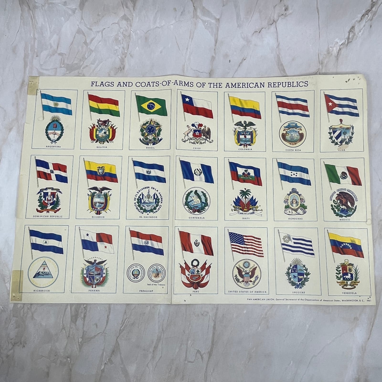 1961 Flags and Coats of Arms of American Republics Poster Pan American Union D10