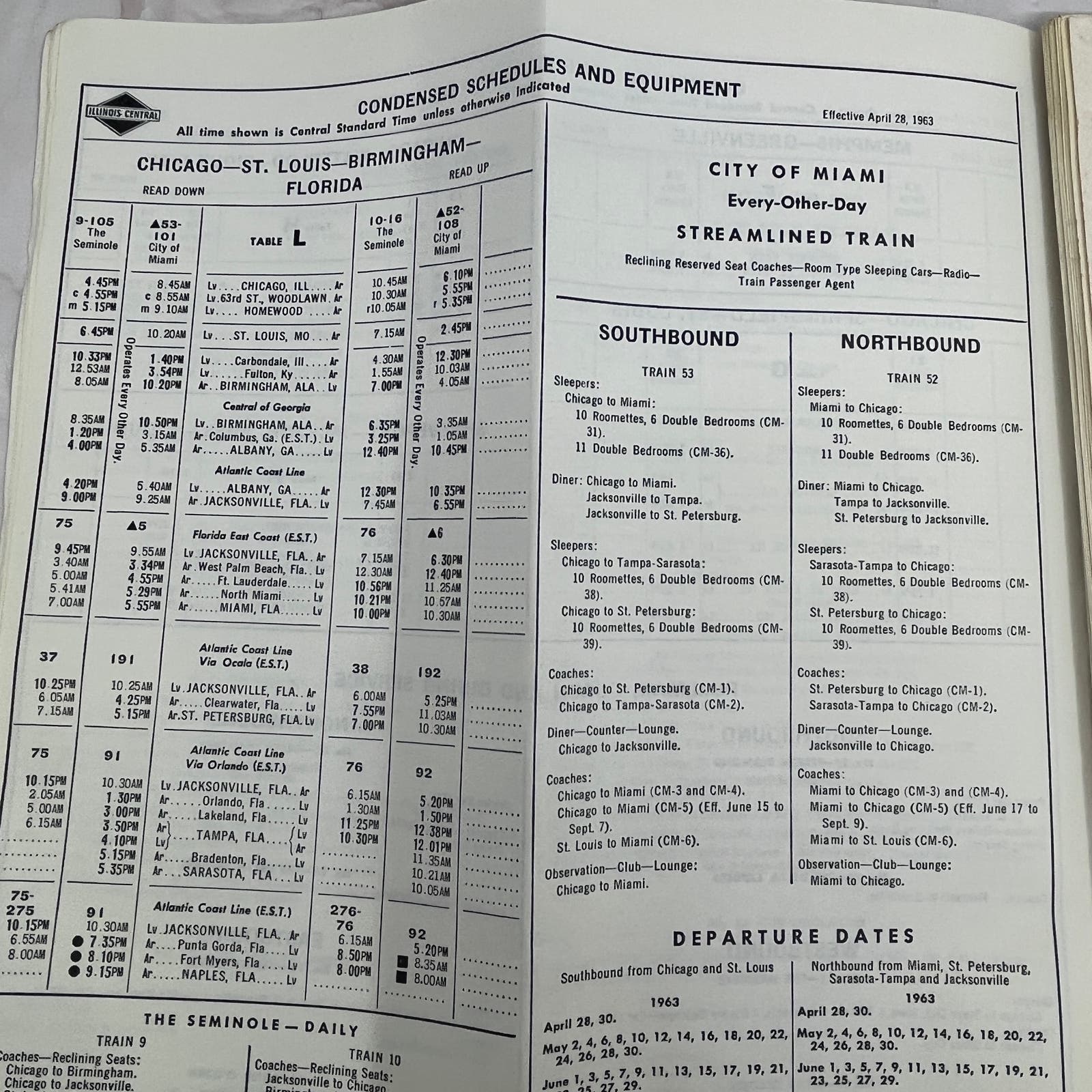 1963 April Illinois Central Railroad Timetables TJ4-P1