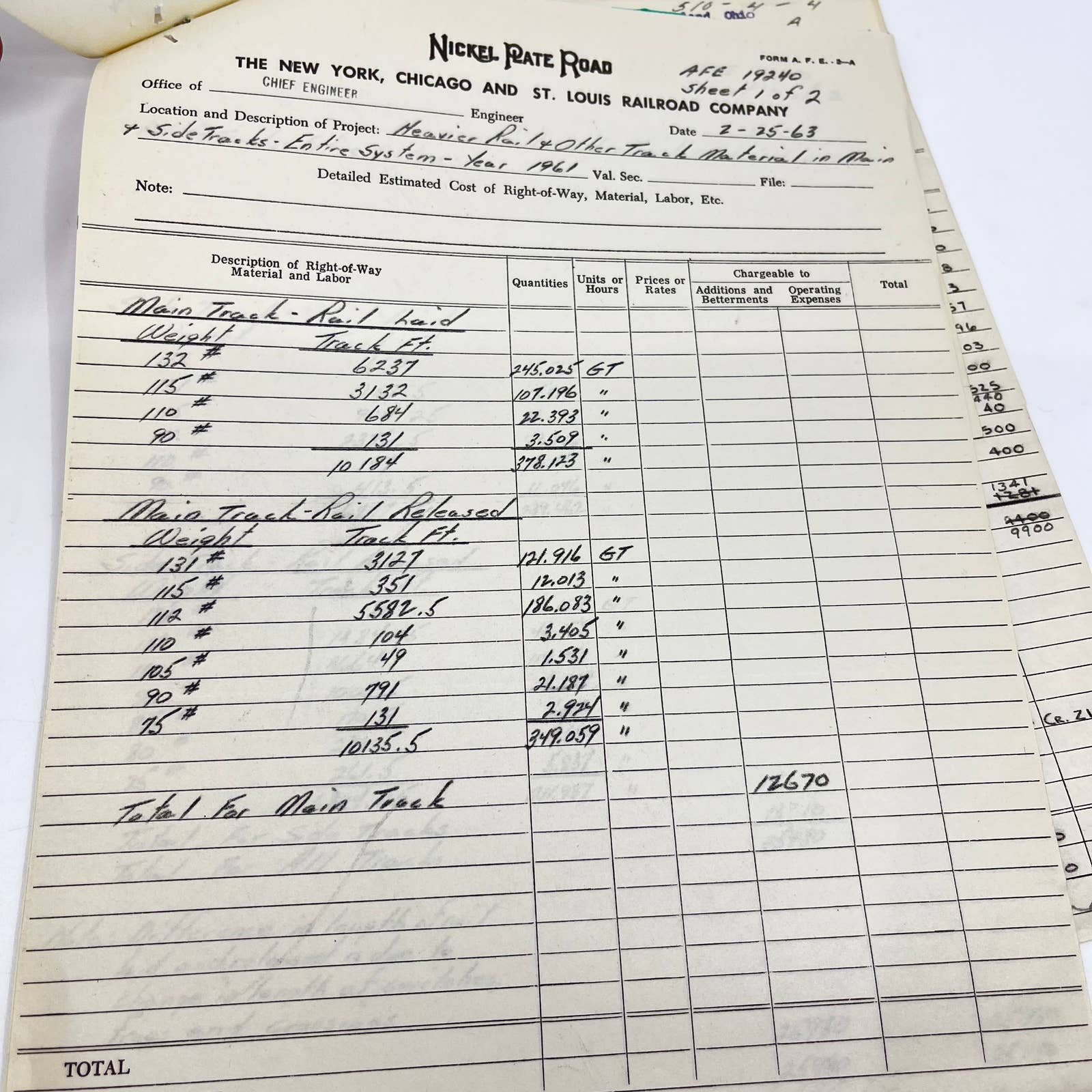 1963 New York, Chicago & St Louis Railroad Co. Invoice Billhead Lot of 5 AA9-5