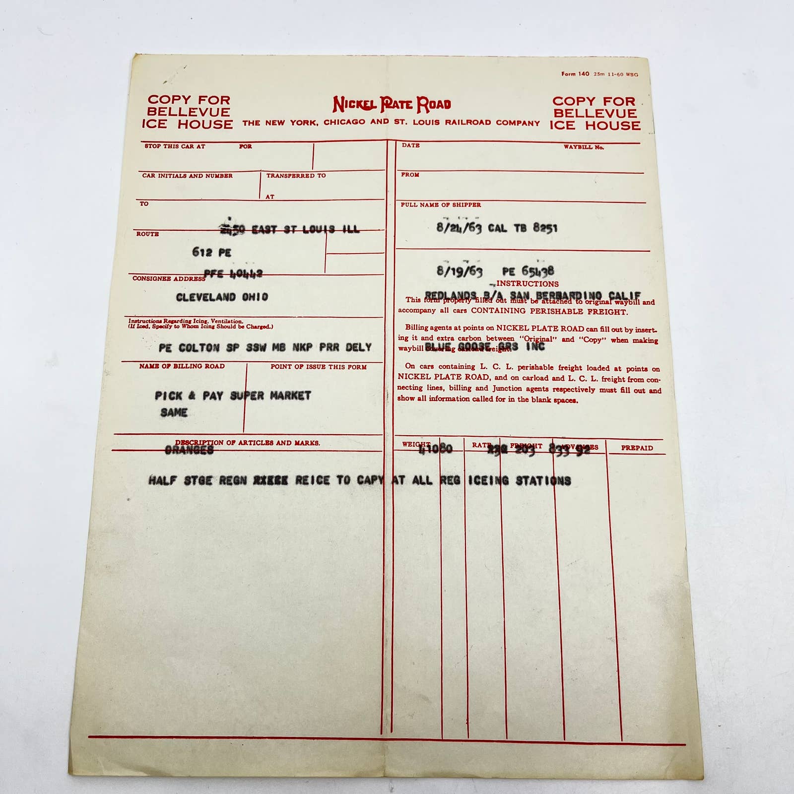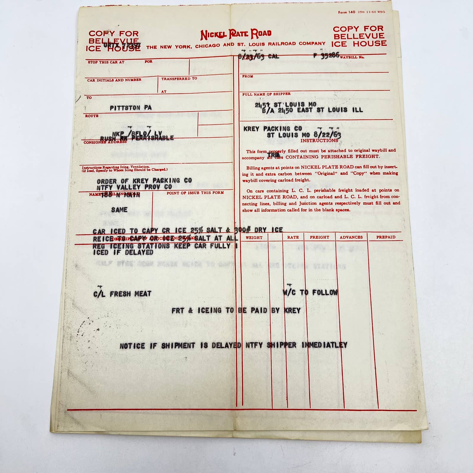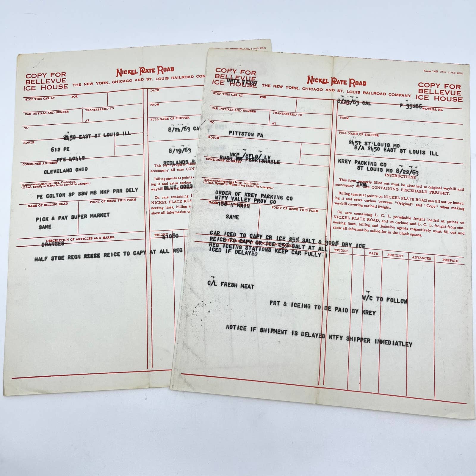 1963 New York Chicago & St Louis Railroad Co Nickel Plate Road Waybill Lot 2 AA9