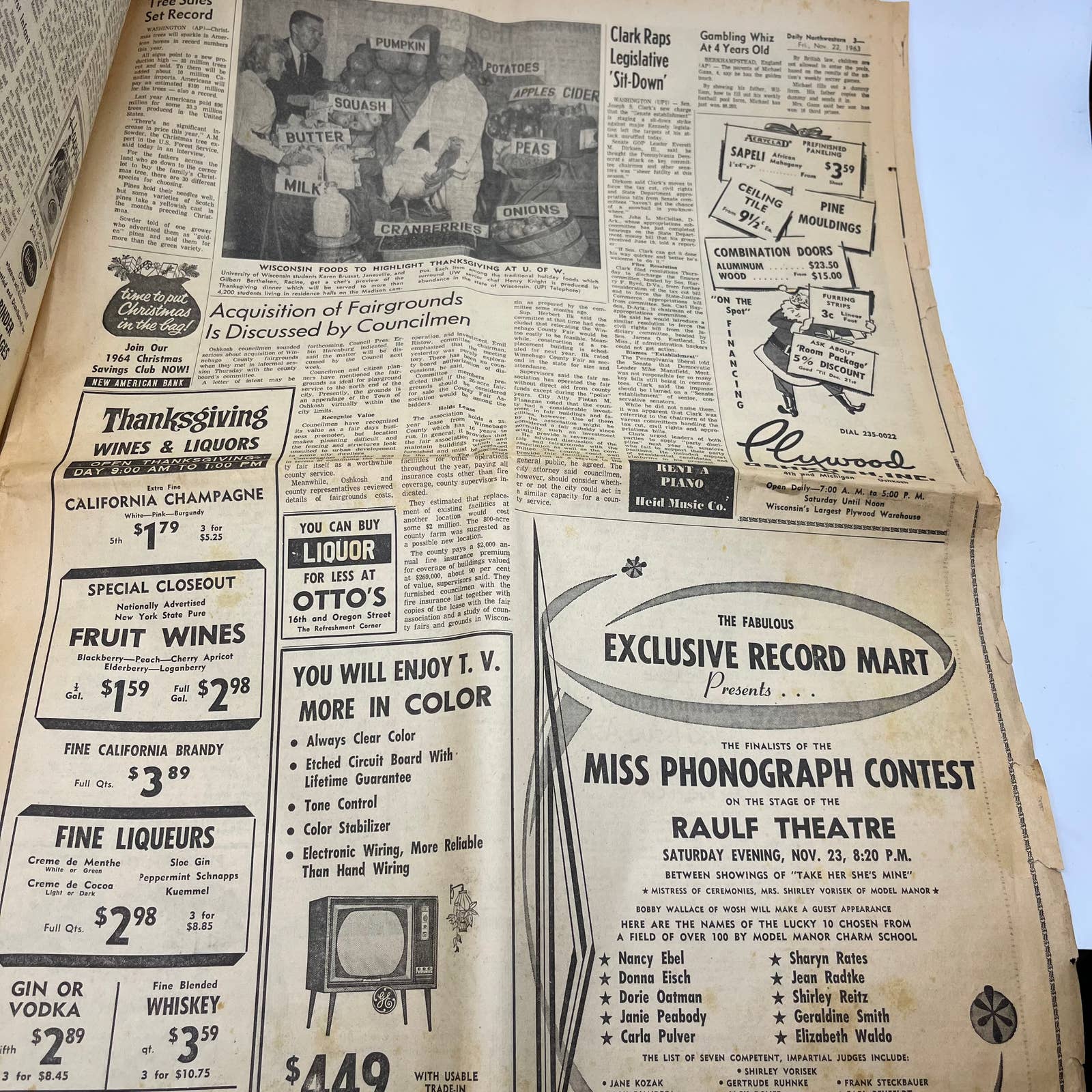 1963 Nov 22 OSHKOSH DAILY NORTHWESTERN Newspaper Pres. Kennedy Dead TI6-7