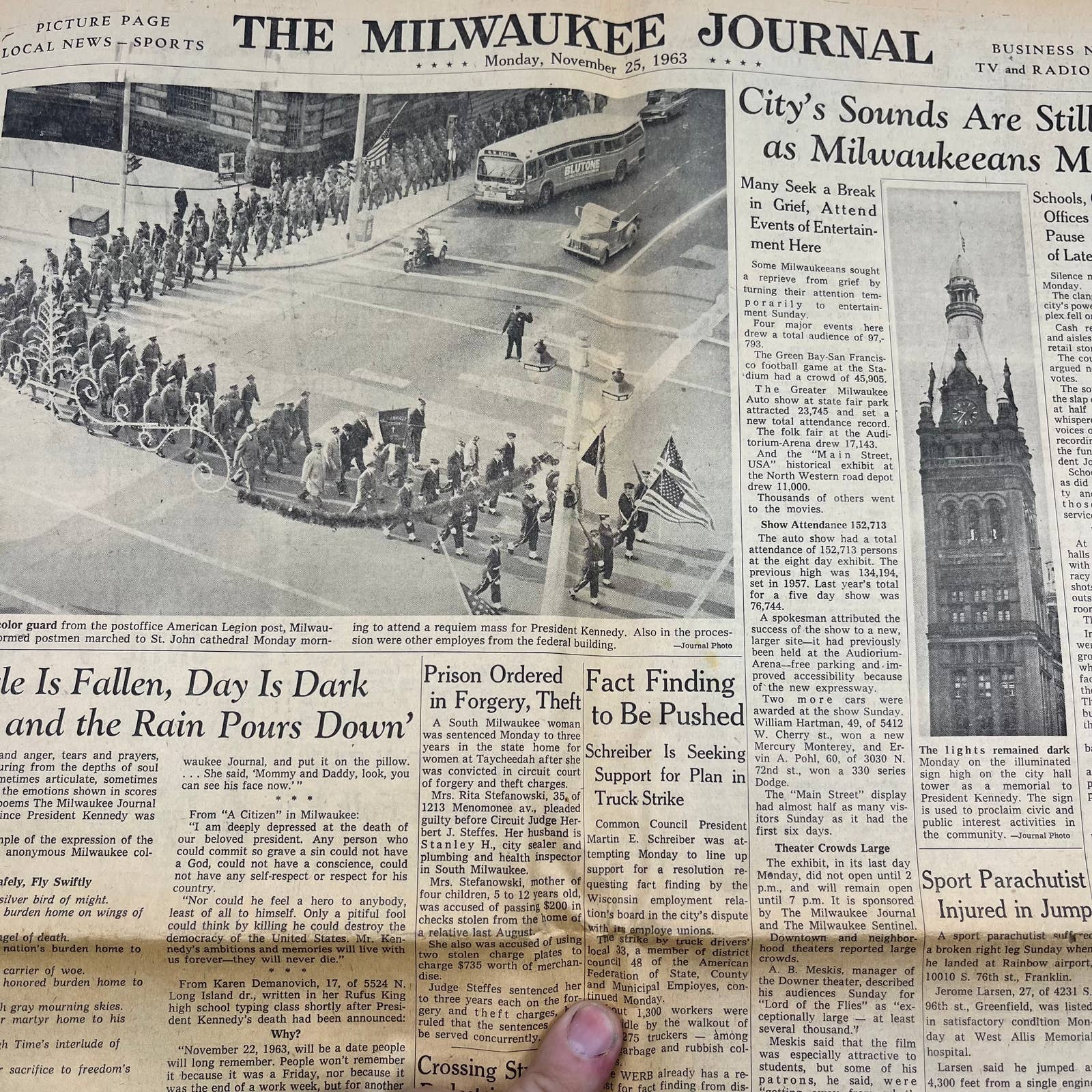 1963 Nov 25 MILWAUKEE JOURNAL Newspaper Pres. Kennedy Buried TI6-19