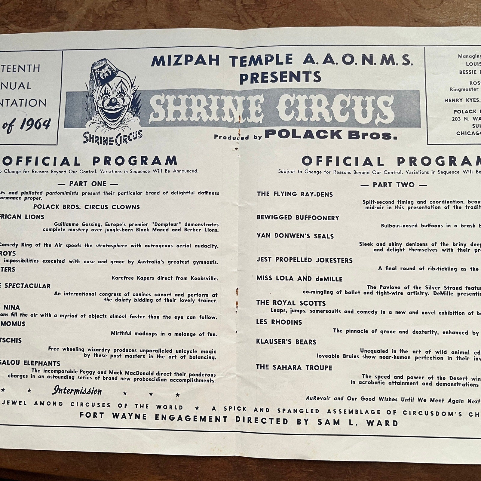 1964 Mizpah Temple Shrine Circus Official Program Ft Wayne IN Fold Out 1964 Ad AG1-9