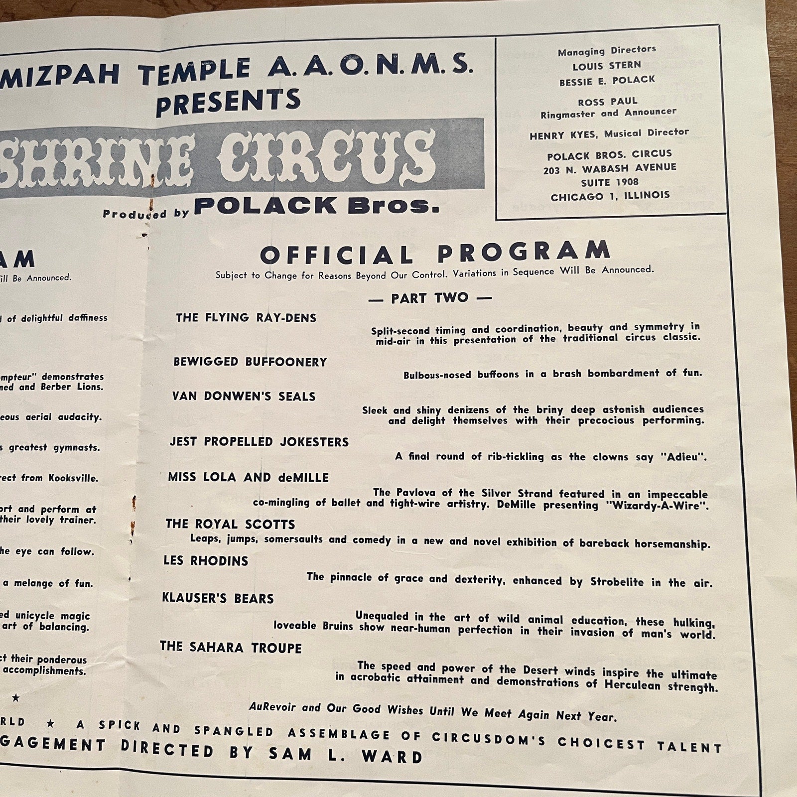 Measures approximately 8.5x11". Original piece pulled from 1964 Mizpah Shrine Temple Circus Program - Fort Wayne Indiana. See pics for condition.