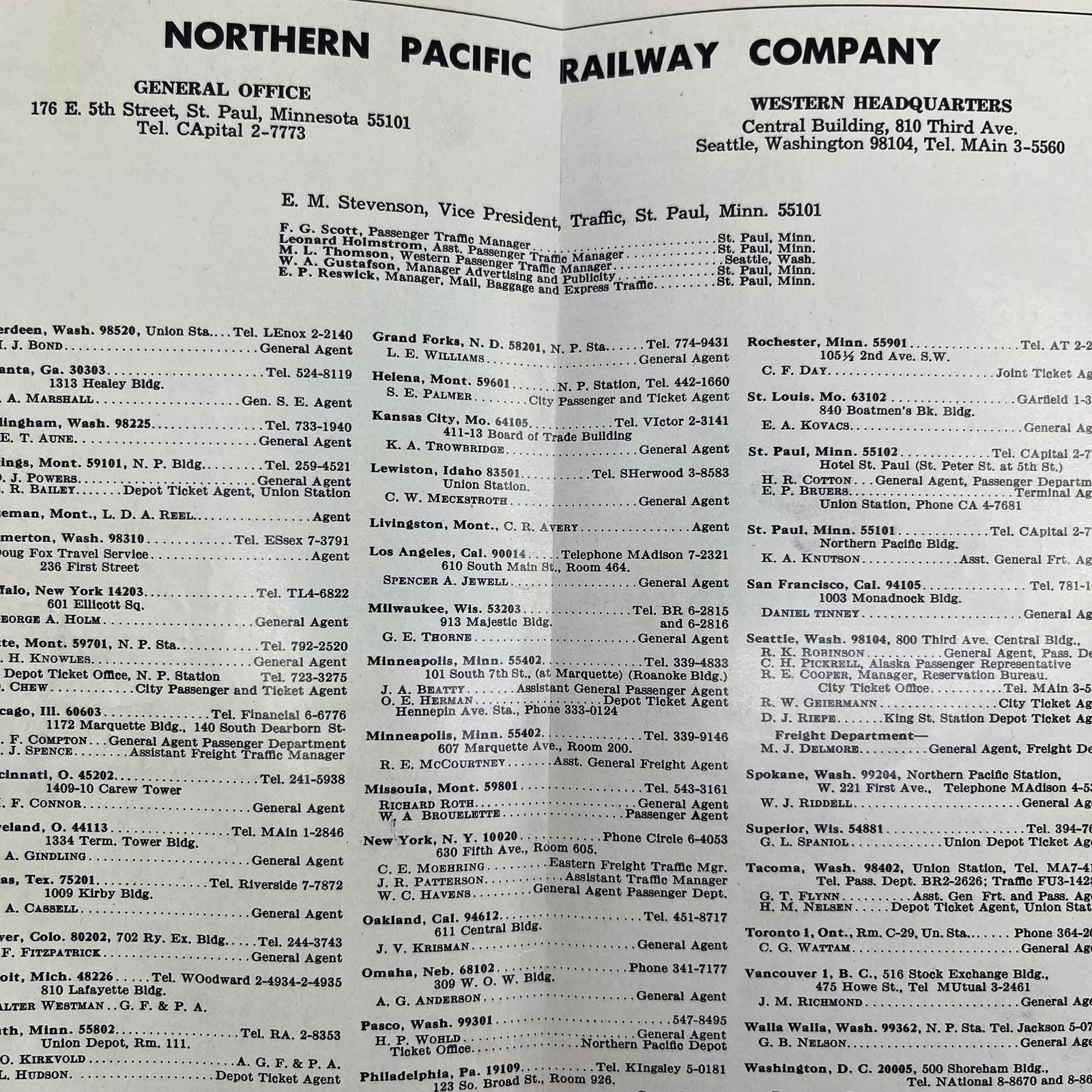 1966 Northern Pacific Railway Company Time Table Vista-Dome TI8-S4
