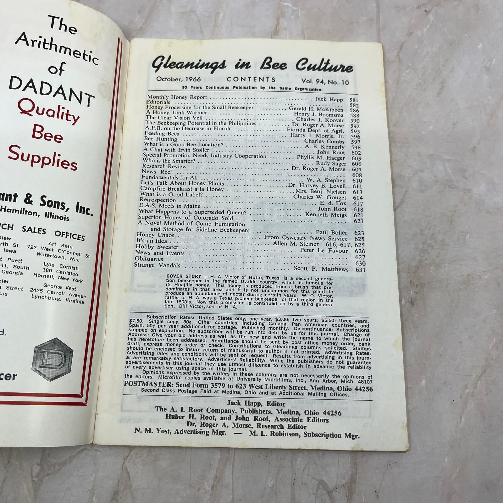 1966 Oct Gleanings in Bee Culture Magazine Bees Beekeeping Honey TD7